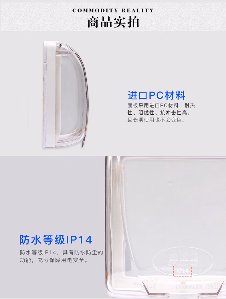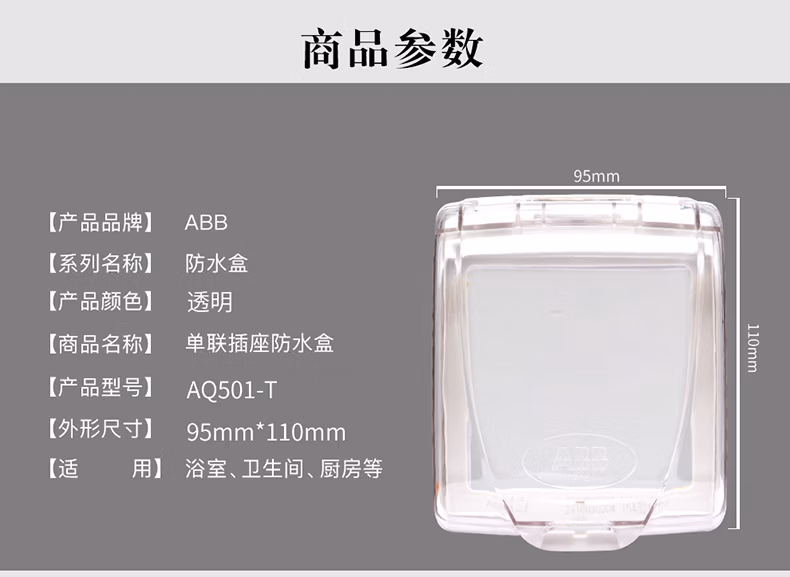 ABB开关插座面板 86型插座单联防水盒防溅盒面盖 透明色
