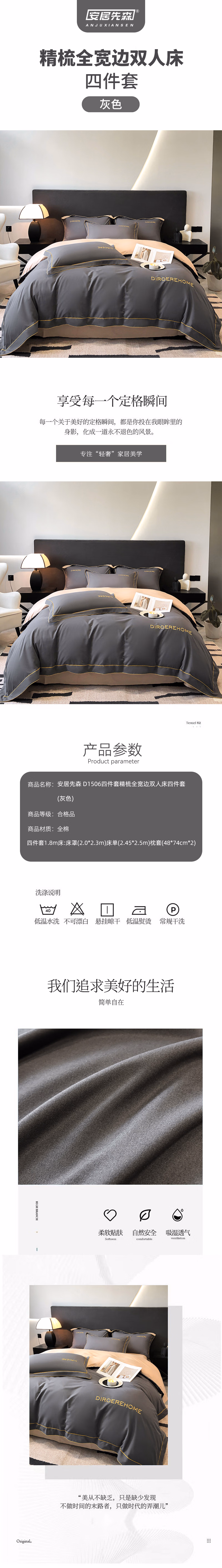 安居先森 D1506四件套 卡帝亚活性精梳棉印花双人床四件套活性印染 (计价单位:套) 灰色