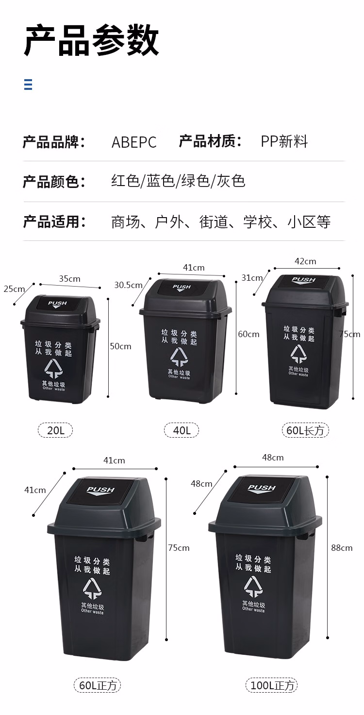 • 商品名称:ABEPC垃圾分类垃圾桶塑料环卫垃圾桶大号家用桶加厚户外北京新国标 240L挂车带轮分类 绿色