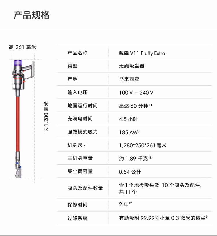 戴森(DYSON) v11 fluffy extra 吸尘器 (计价单位:台) 红蓝