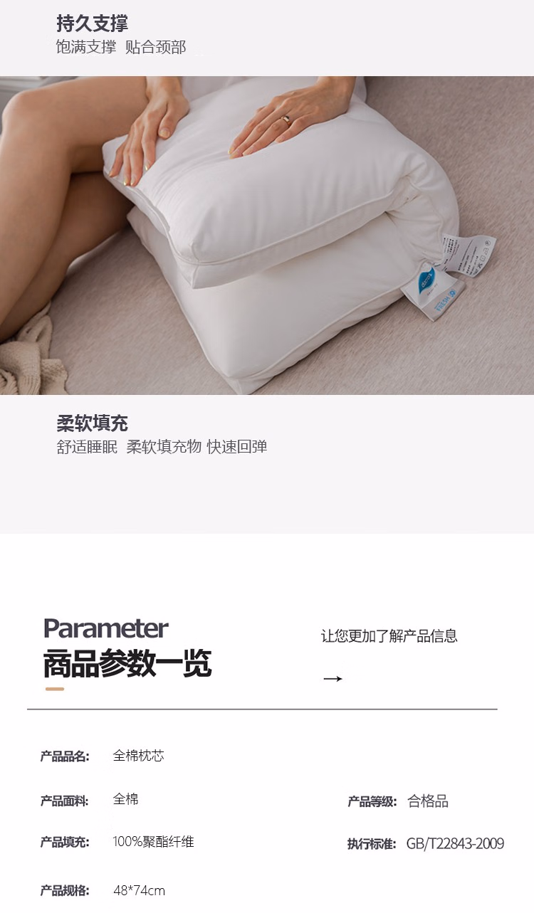 • 商品名称:婵思KJ枕芯 白色 48*74cm/ZXGTDC2000045