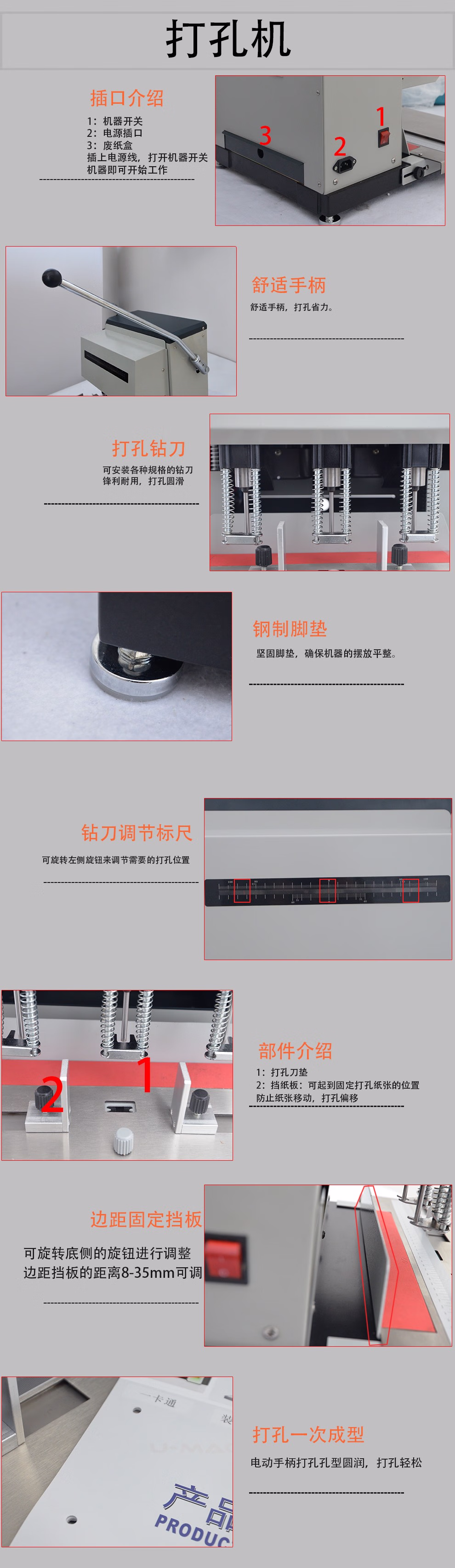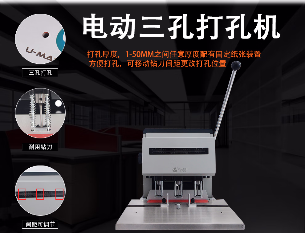 优玛仕(U-MACH) U-DP303 电动3孔 打孔机 1.00 支/台 (计价单位:台) 灰色