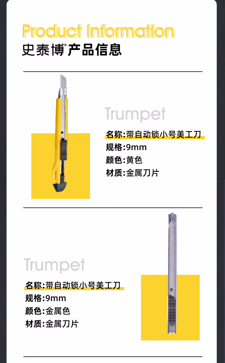 史泰博 SX42 STAKM1108 带自动锁 总长约140mm 小号 美工刀 (计价单位:把) 黄色