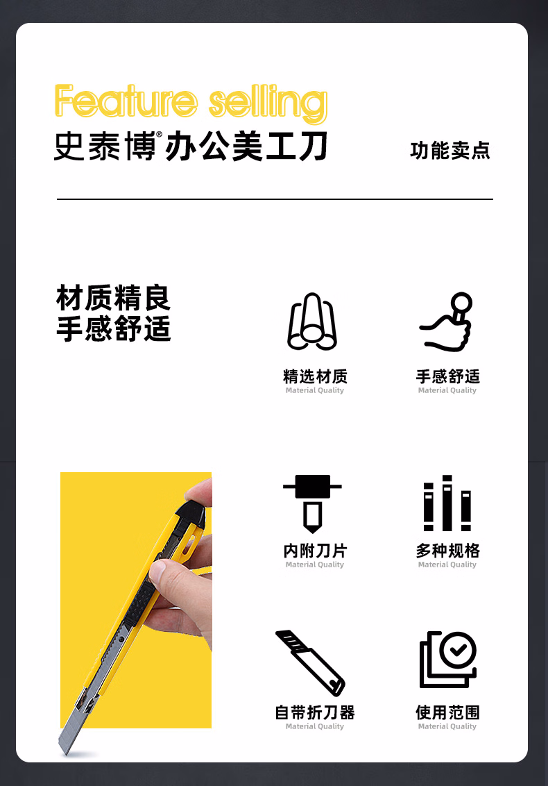 • 商品名称:史泰博 大小号美工刀 带自动锁 耐用壁纸刀/裁纸刀/墙纸刀 SX42 STAKM1108 带自动锁 140mm
