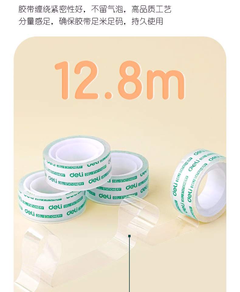 得力(deli) 30065 18mm*30y 窄 透明胶带 8.00 个/筒 (计价单位:筒) 超透明