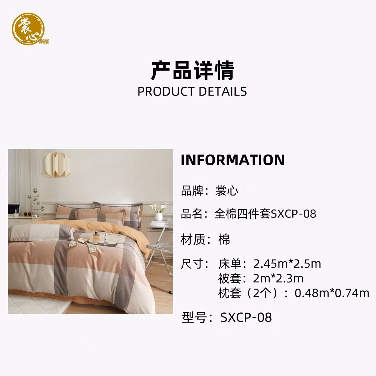 裳心 SXCP-08 全棉四件套 床单2.45m*2.5m 被套2m*2.3m 枕套(2个)0.48m*0.74m 床上套件 (计价单位:套) 花色