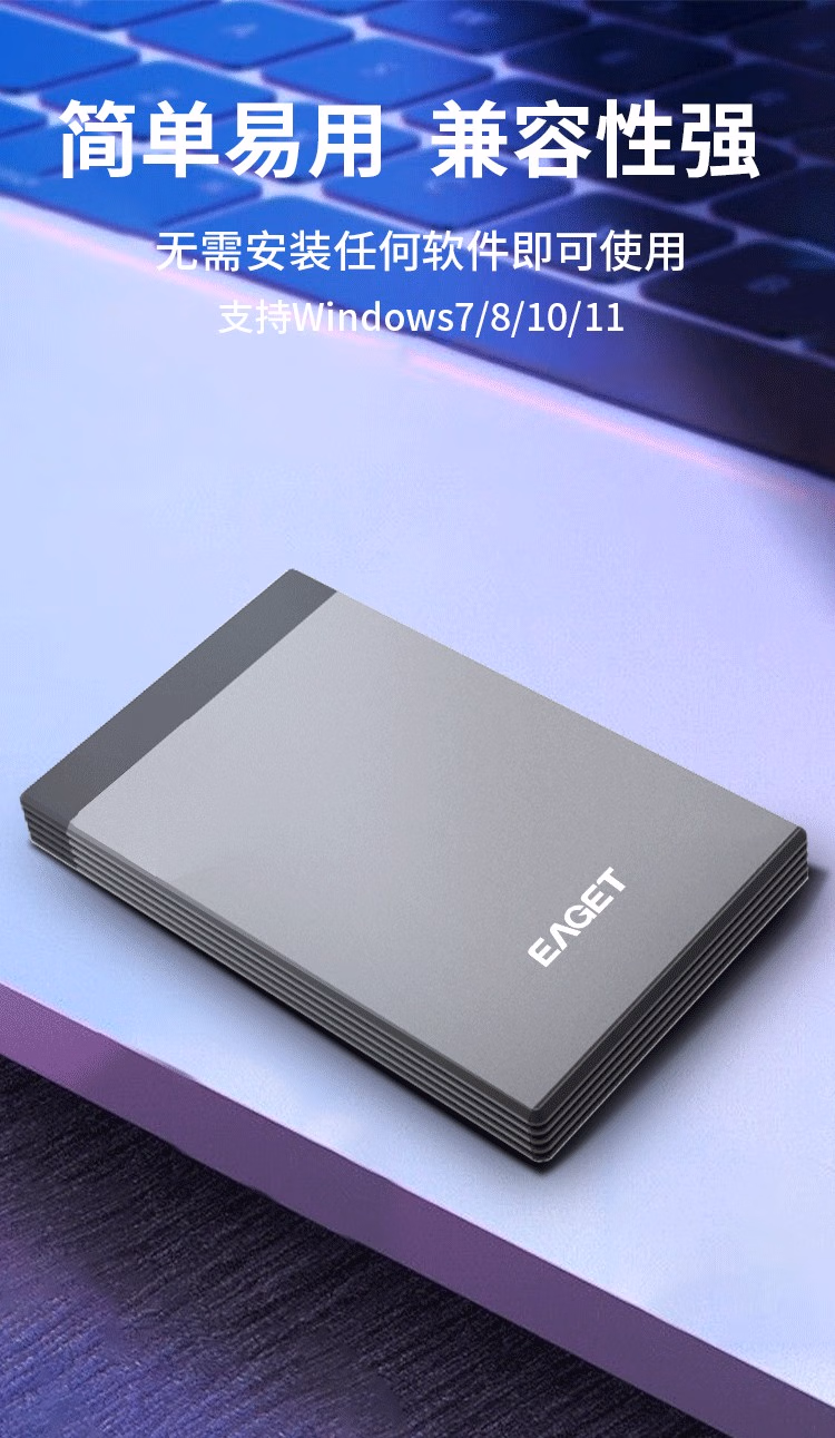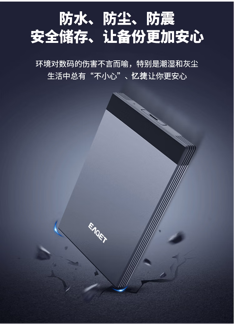 忆捷(EAGET) G58pro Type-C 3.1高速传输 2TB 移动存储硬盘 (计价单位:个) 锖色