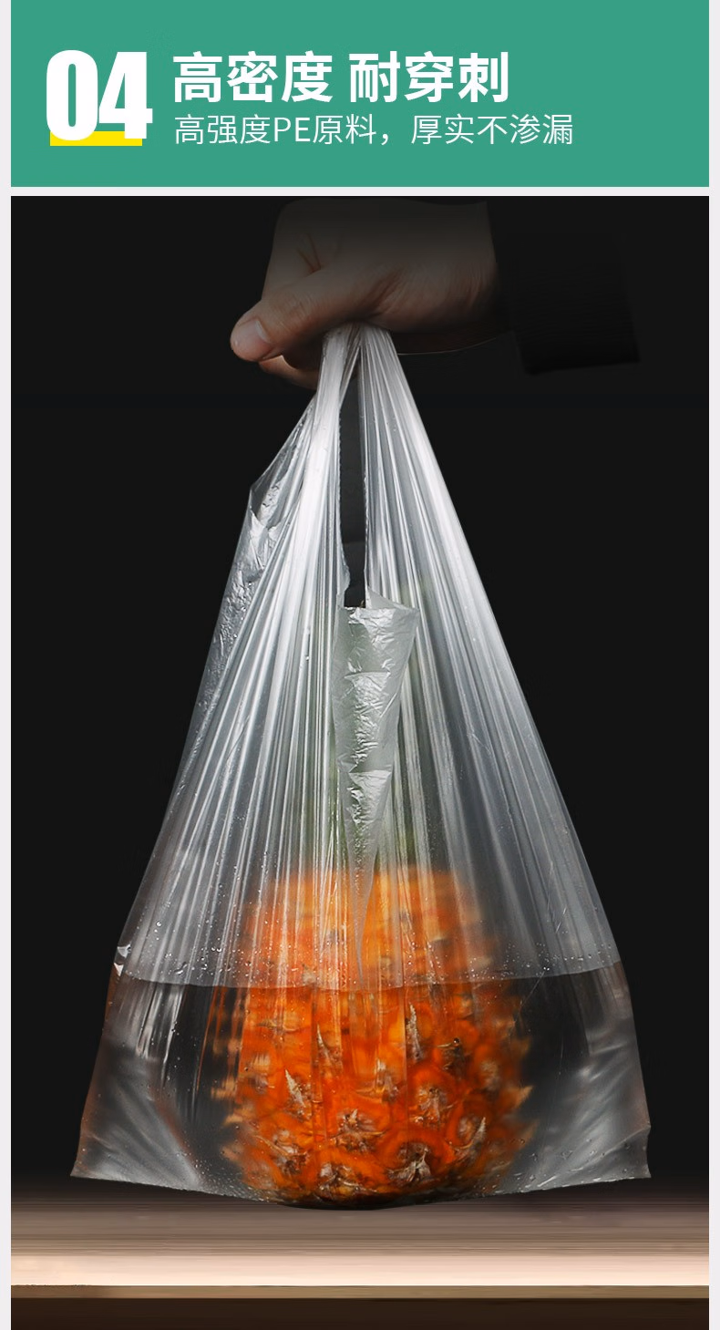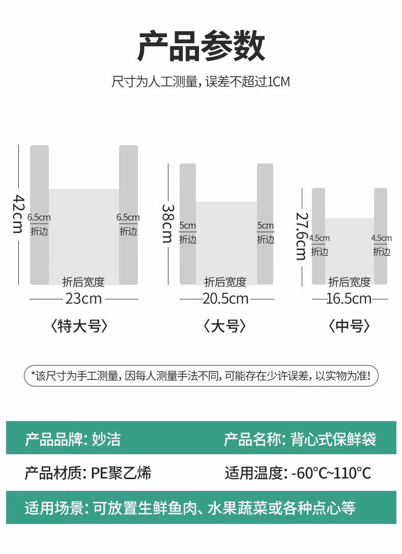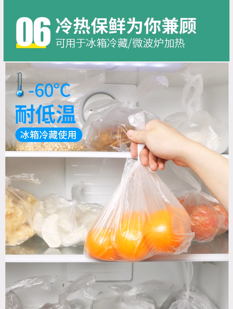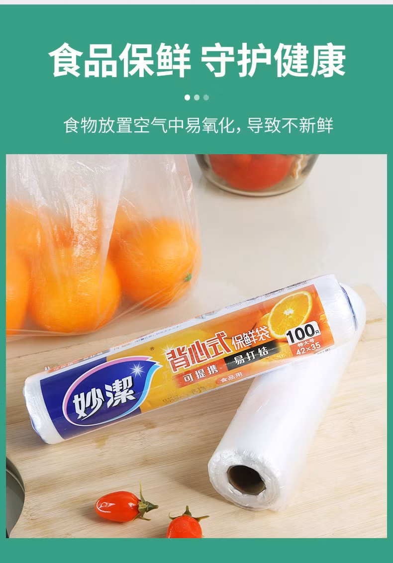 妙洁背心式保鲜袋一次性手提家用食品级耐高温分装食品袋 背心式中号1卷200只 单位:卷