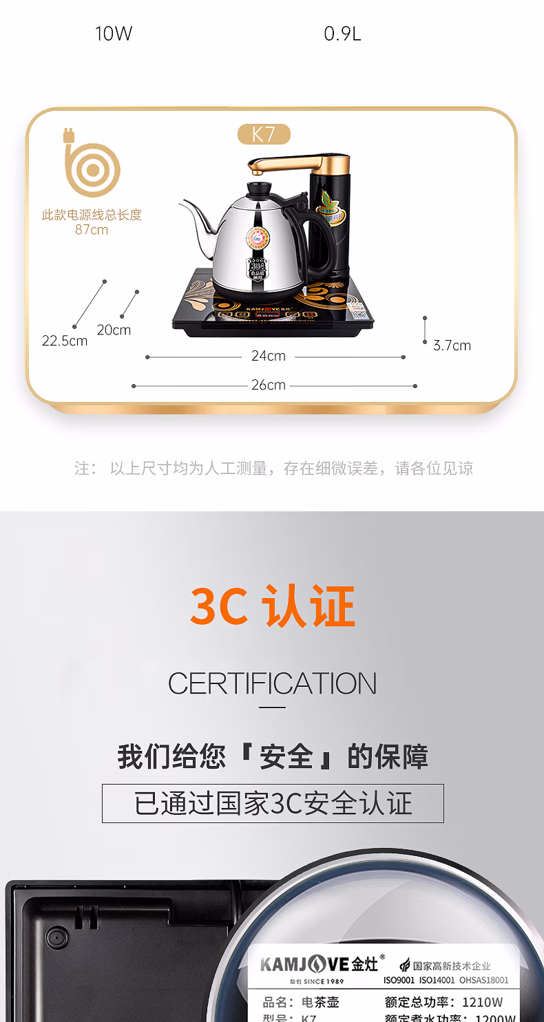 金灶(KAMJOVE) 全智能自动上水电热水壶电热壶茶具全自动电茶炉烧水壶茶具 K7 单位:套