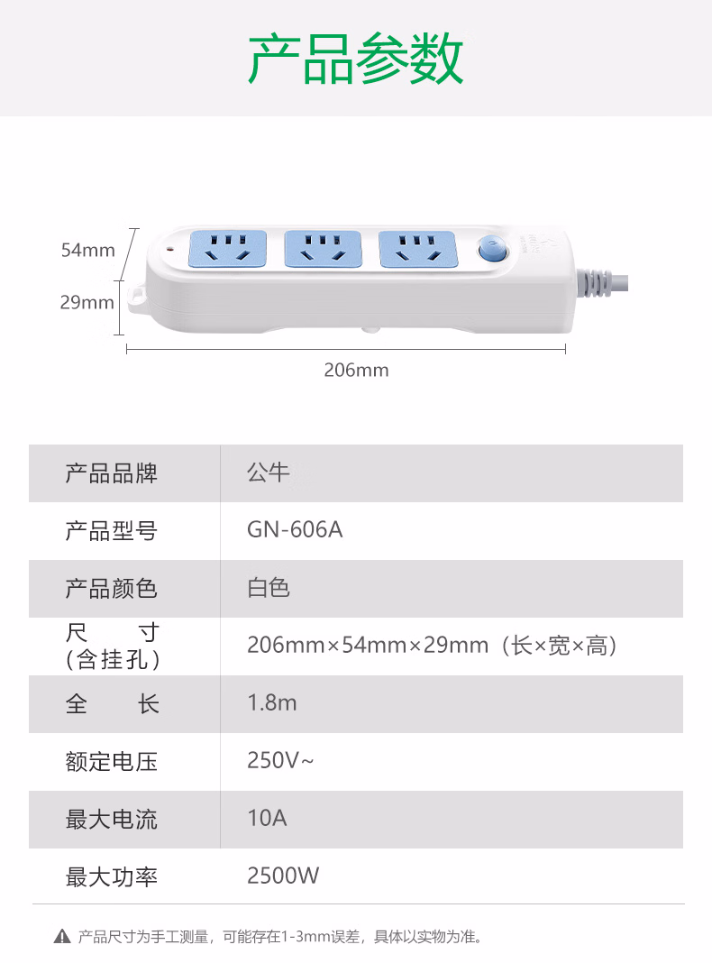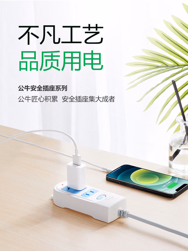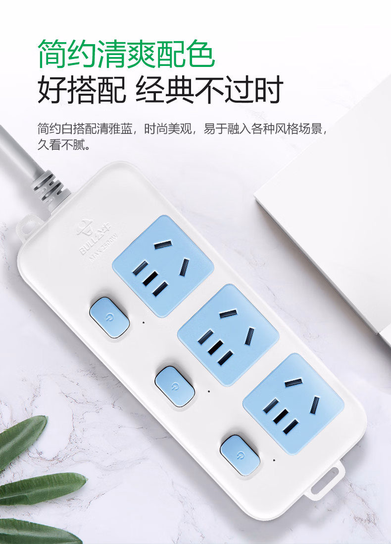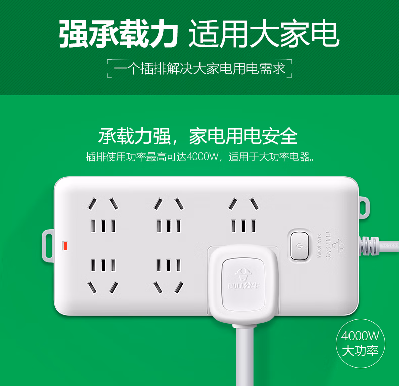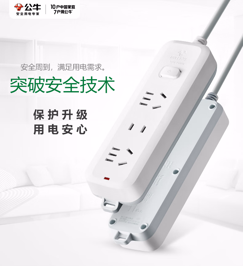 公牛(BULL) GN-B15D 总控6位3米 插排 (计价单位:个) 白色