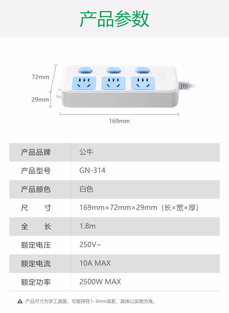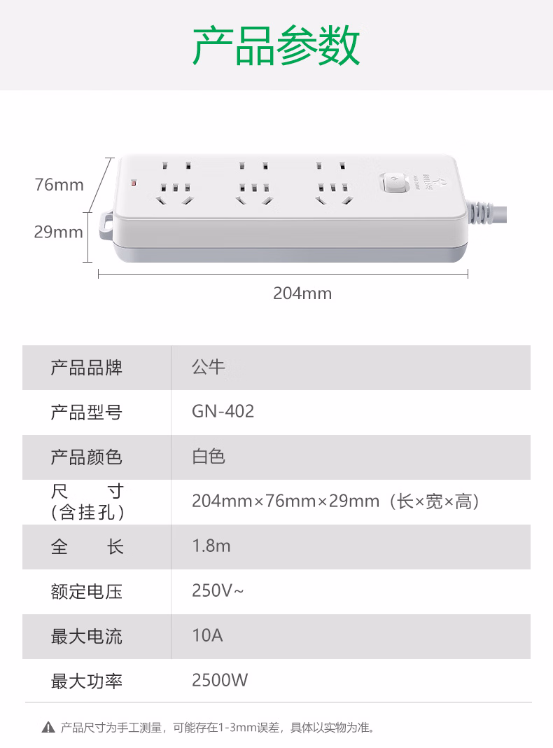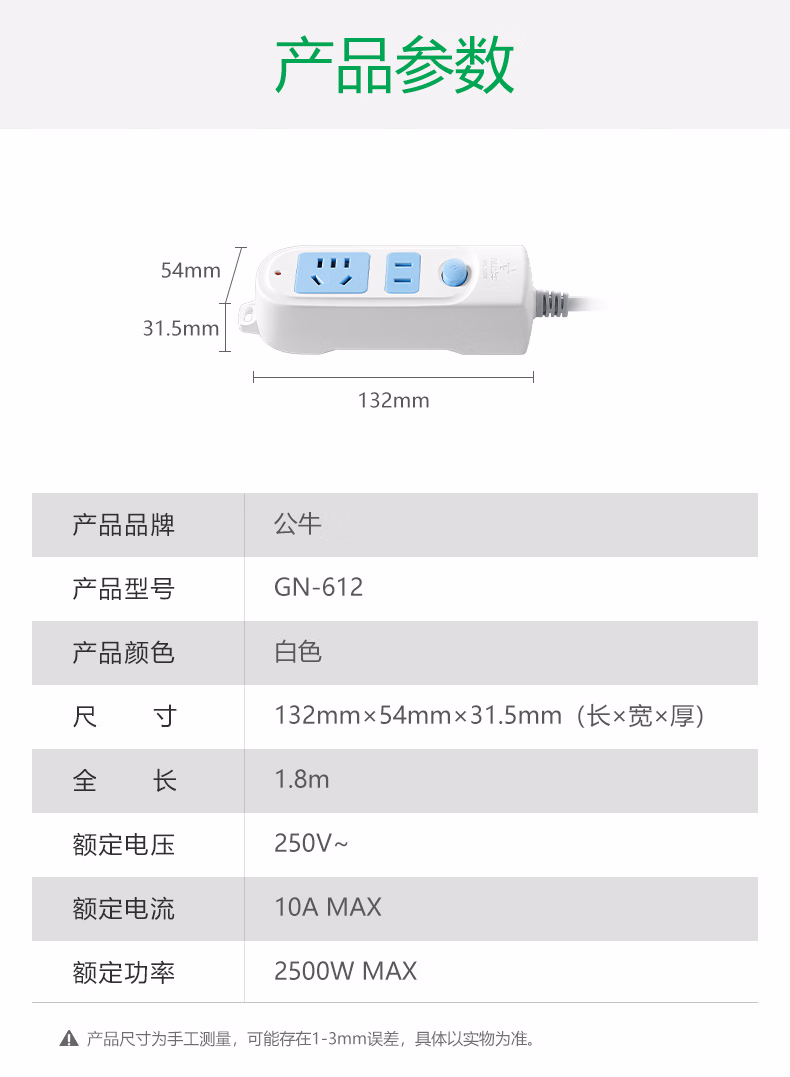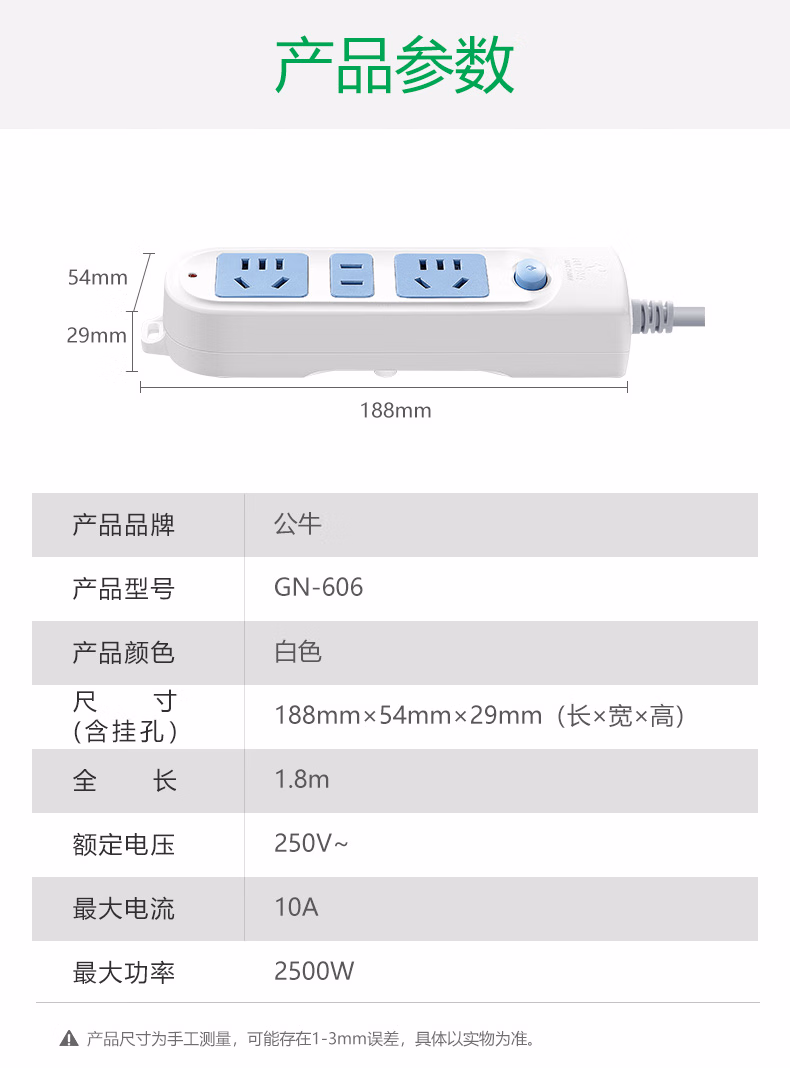 公牛(BULL) GN-B15D 总控6位3米 插排 (计价单位:个) 白色