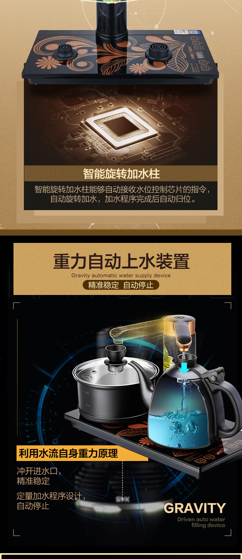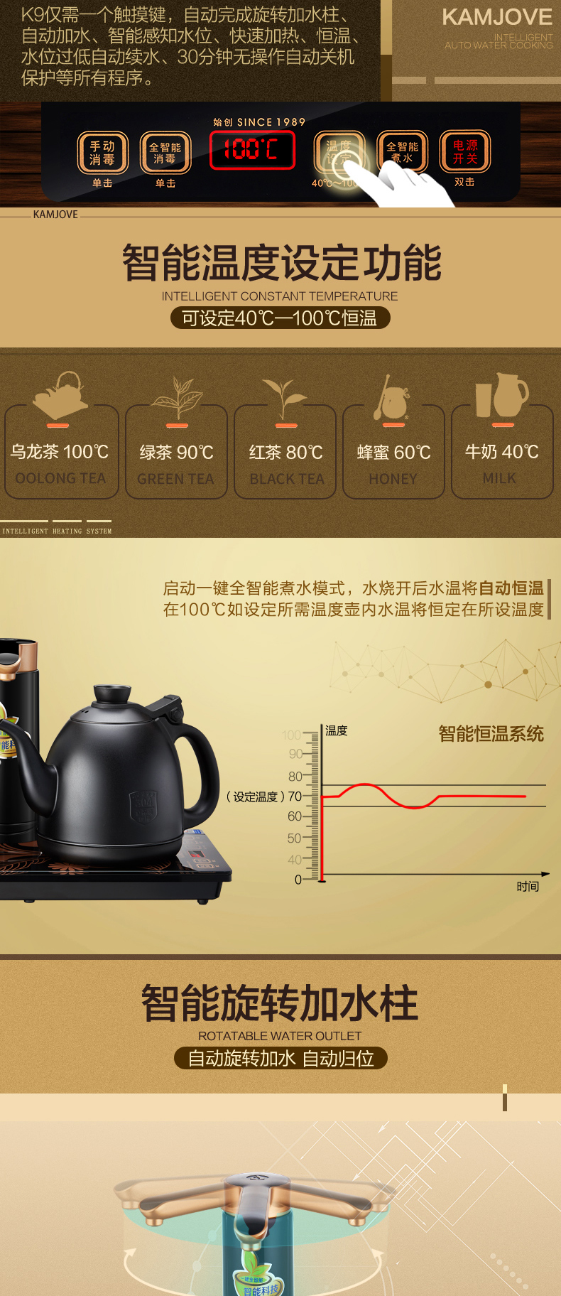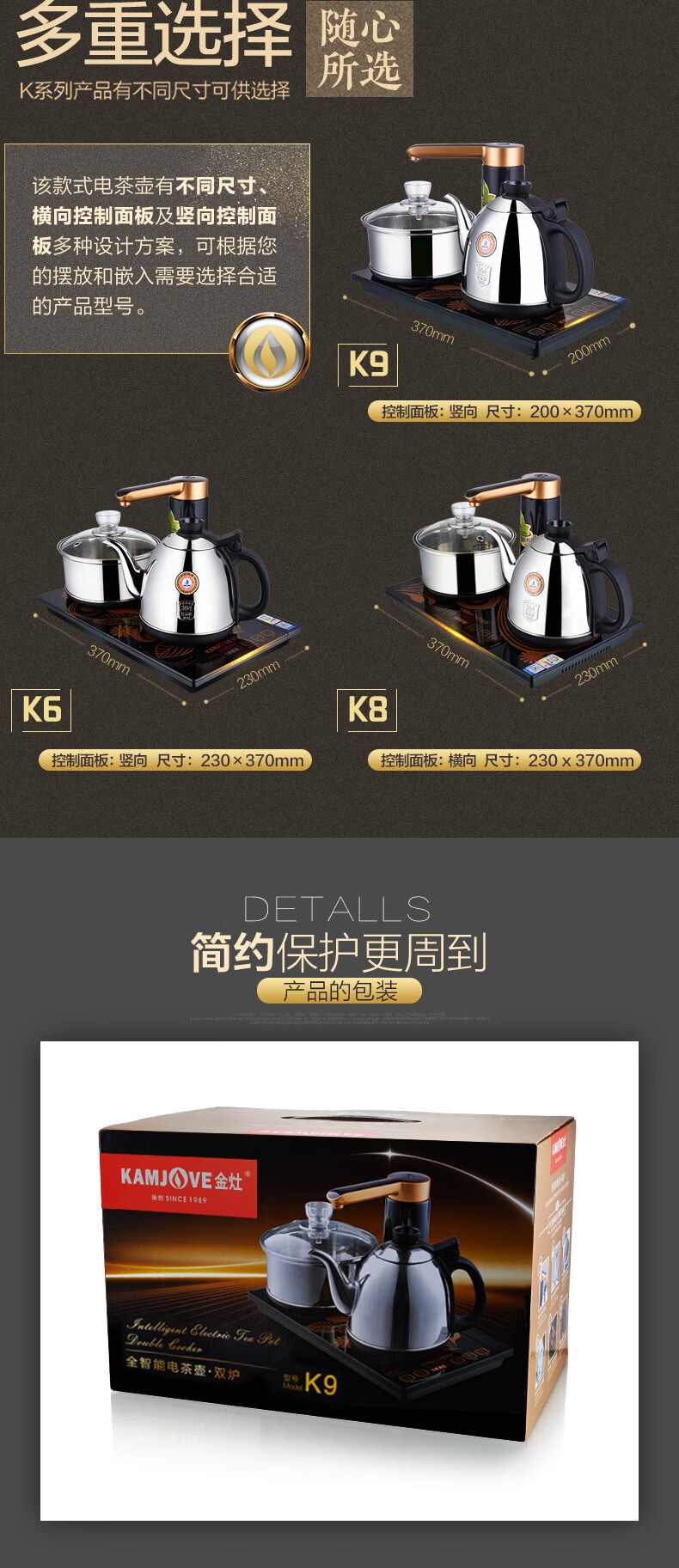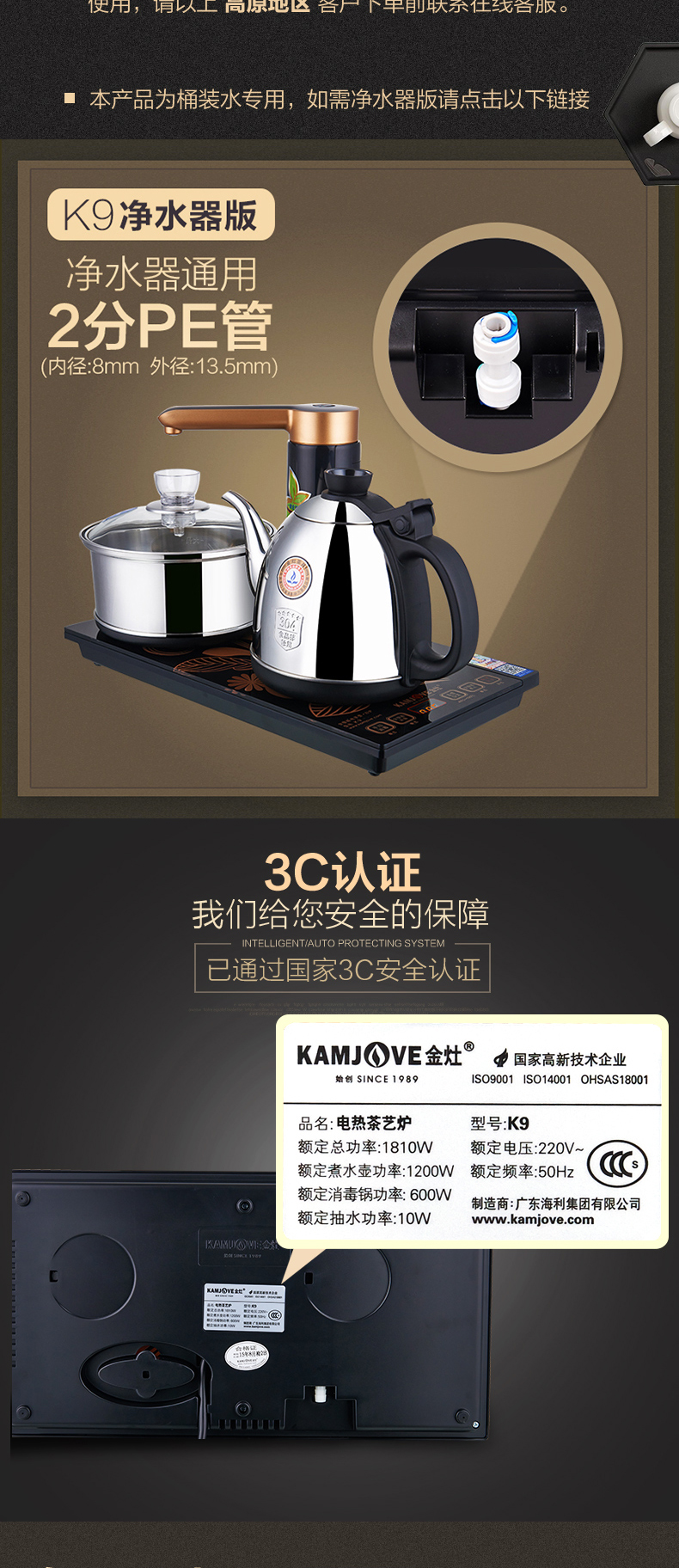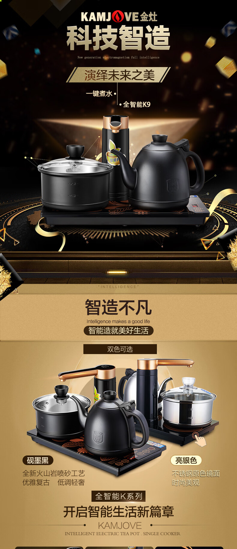 金灶(KAMJOVE) 全自动上水电热水壶 电茶壶茶具 全智能电茶炉烧水壶茶具 家用热水壶茶台烧水壶 K9黑色版 单位:套