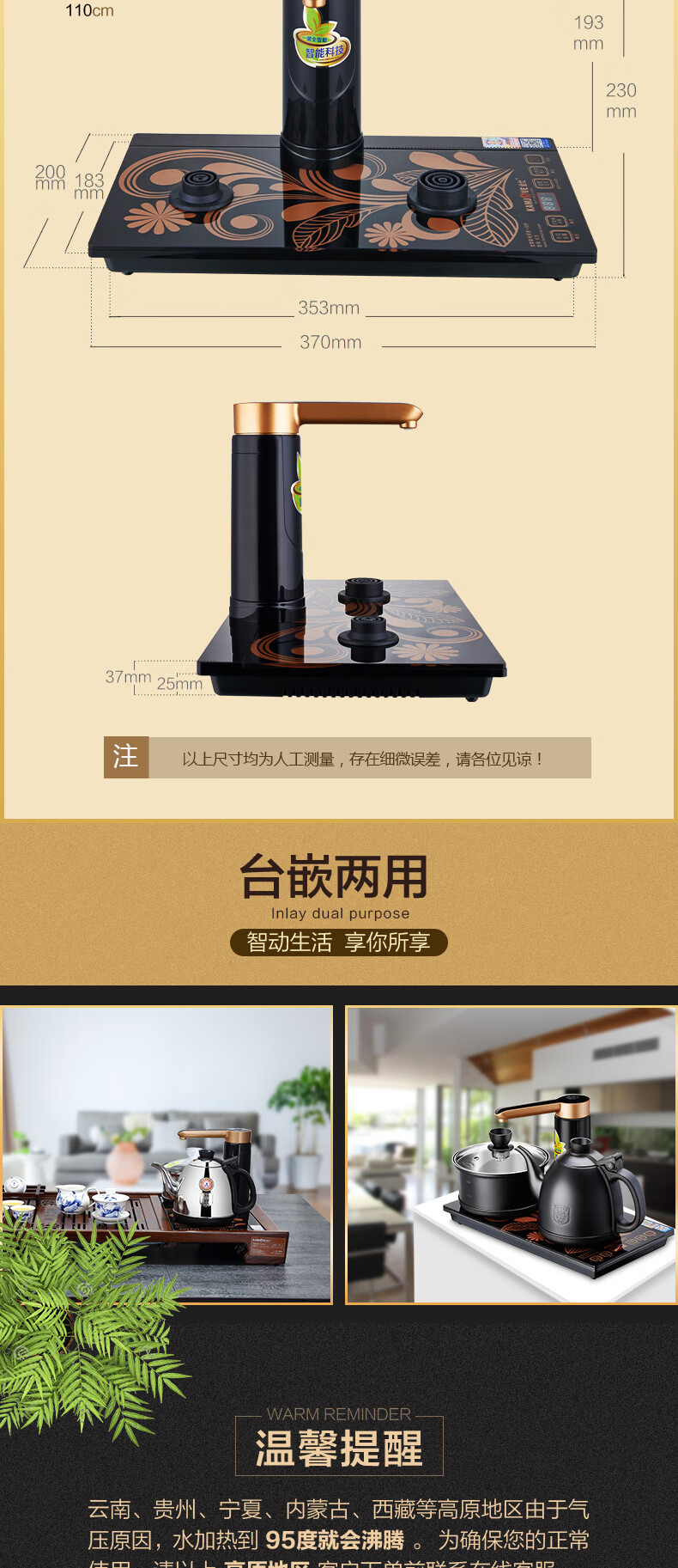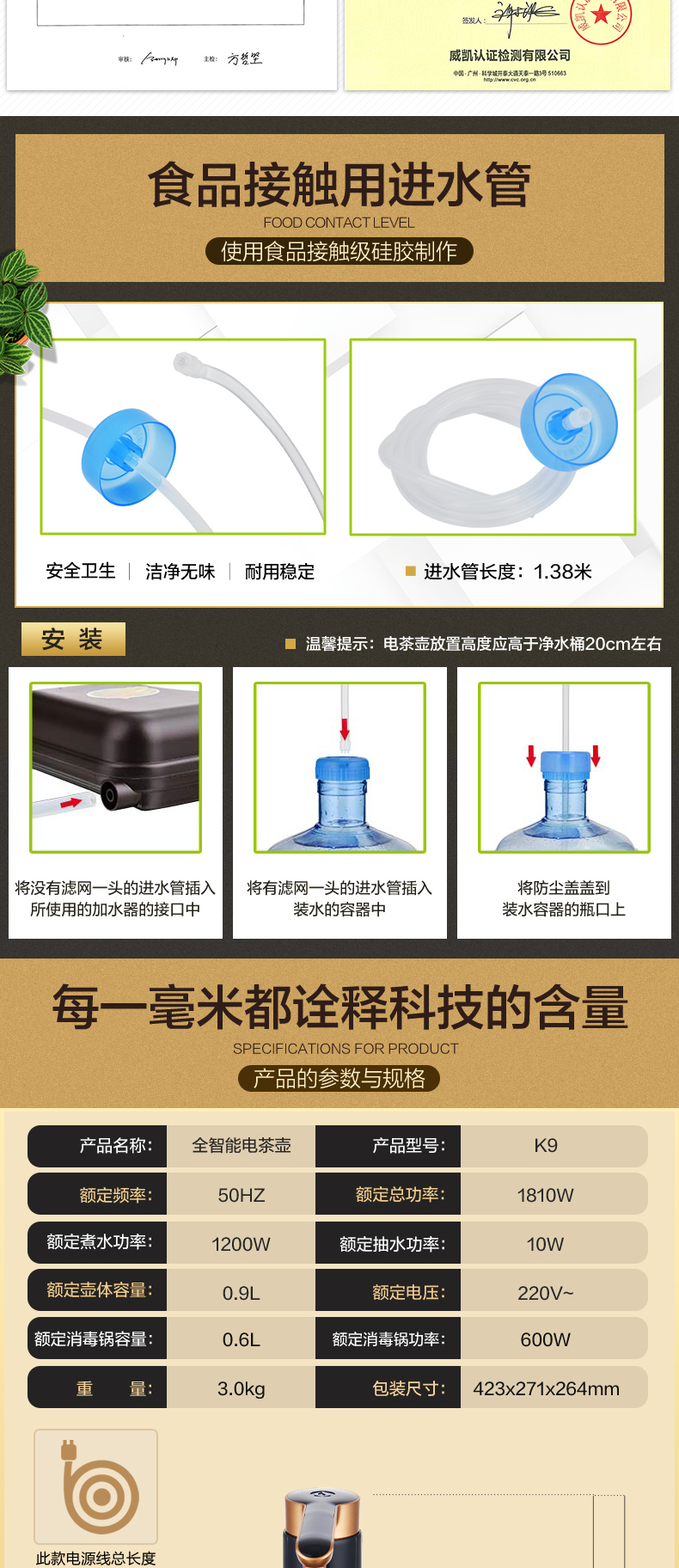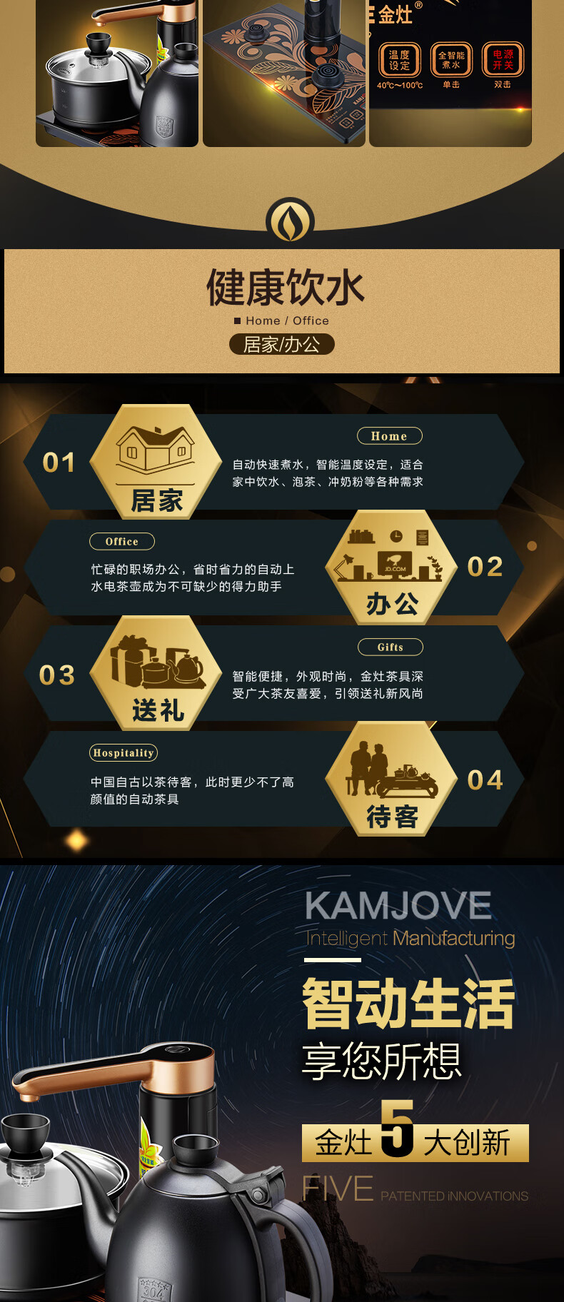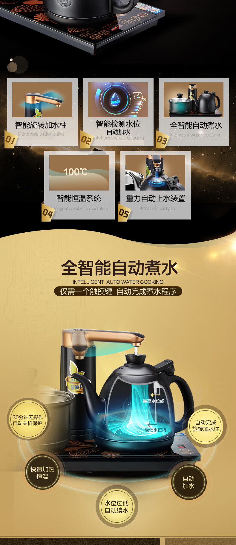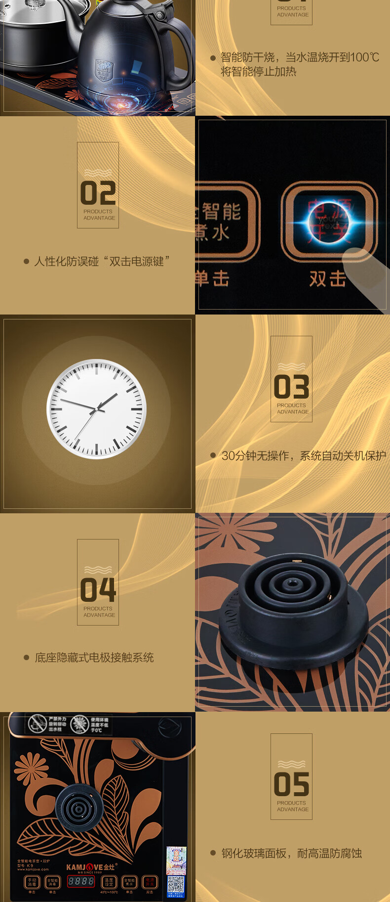 金灶(KAMJOVE) 全自动上水电热水壶 电茶壶茶具 全智能电茶炉烧水壶茶具 家用热水壶茶台烧水壶 K9黑色版 单位:套