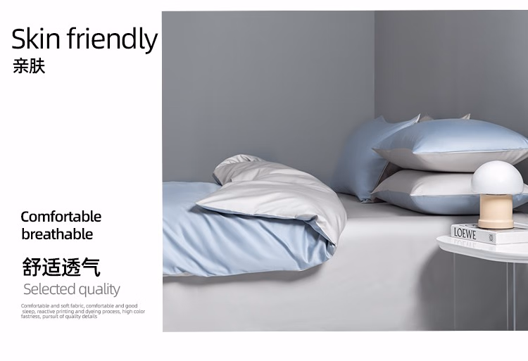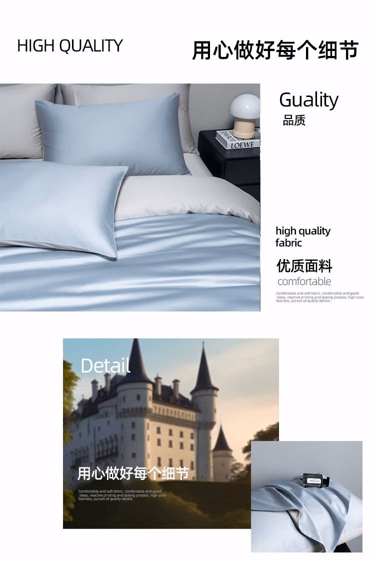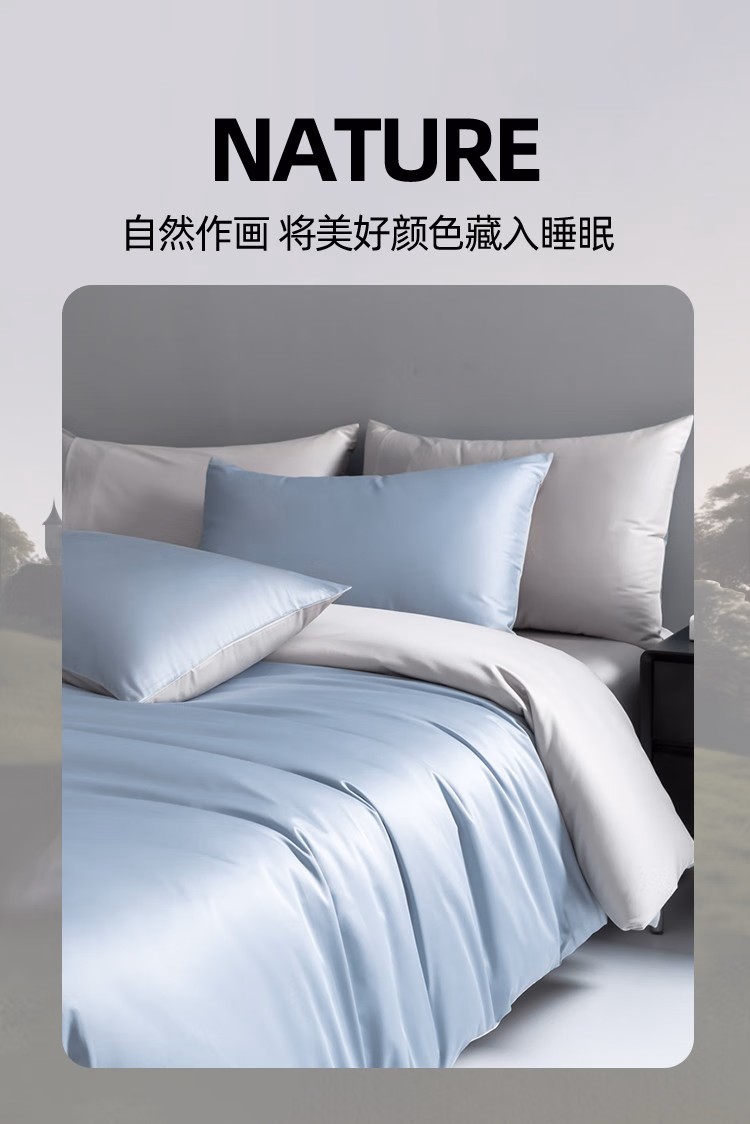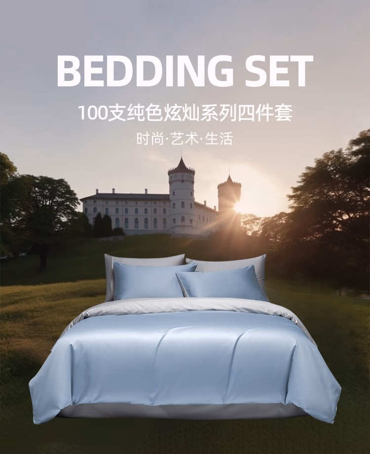 • 商品名称:伊伊爱100支(50S双股)纯色四件套 炫灿系列 软香蓝拼浅灰 200*230cm/TJ0HJC2302004
