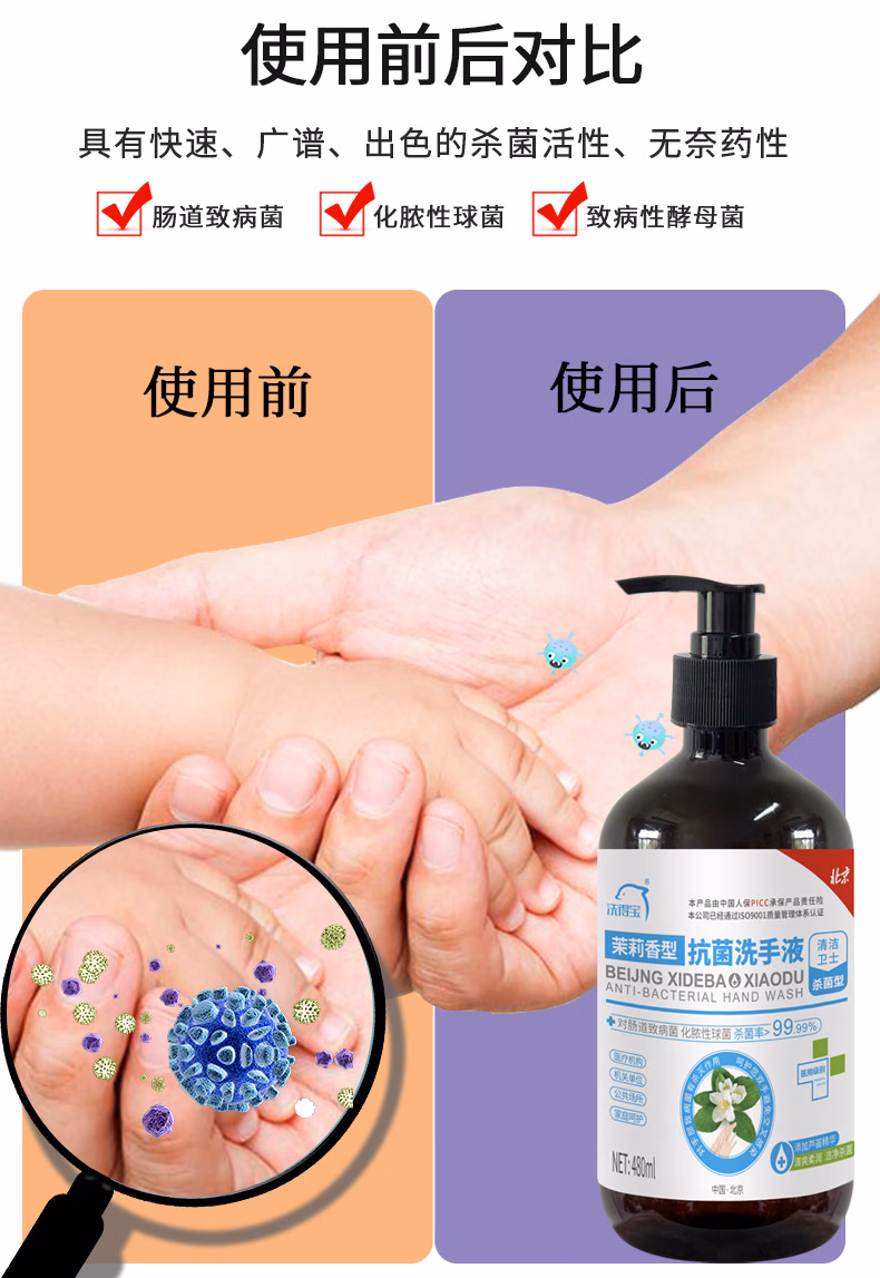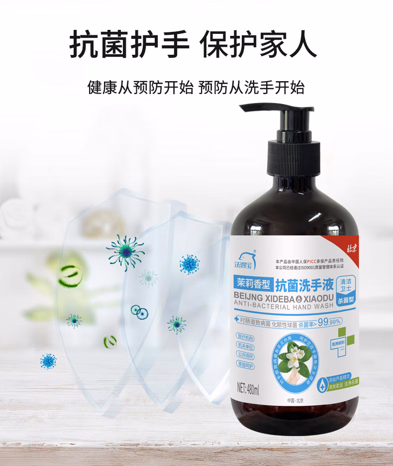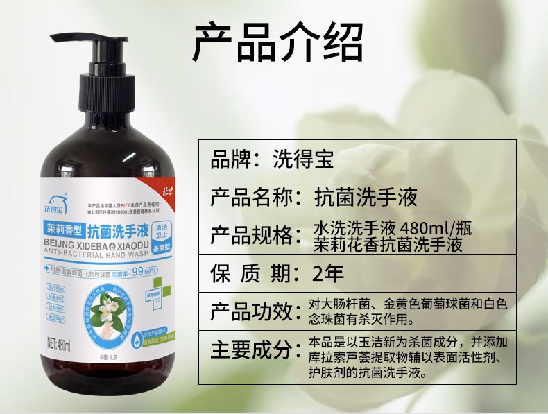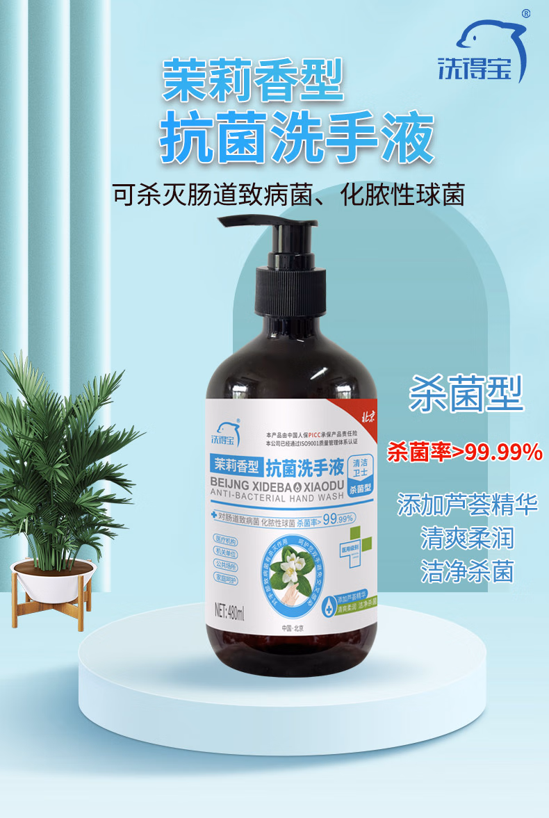 洗得宝 480ml/瓶 茉莉花香抗菌水洗洗手液 抗菌洗手液 (计价单位:瓶) 棕