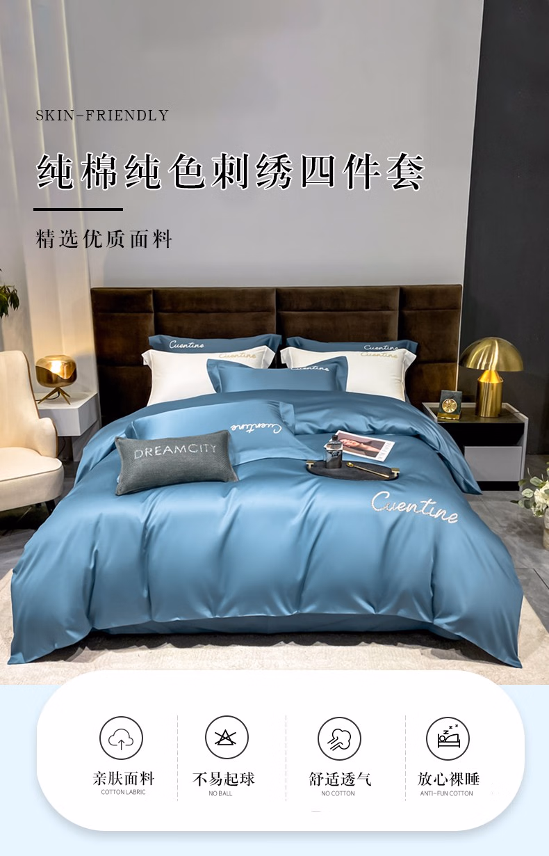 • 商品名称:弗切尔珀榕 纯棉纯色刺绣初见系列四件套 宾利蓝 200*230cm/FNH0220557L