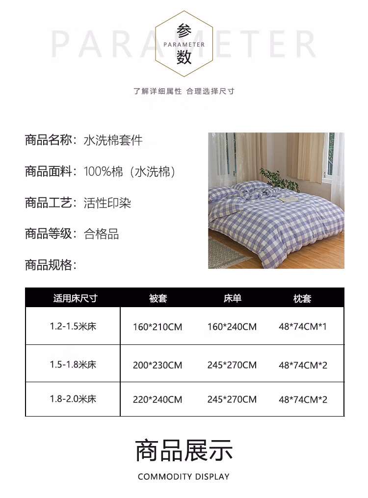 弗切尔珀榕 FSXM210156 /220*240cm水洗棉中格四件套 床上套件 (计价单位:套) 绿