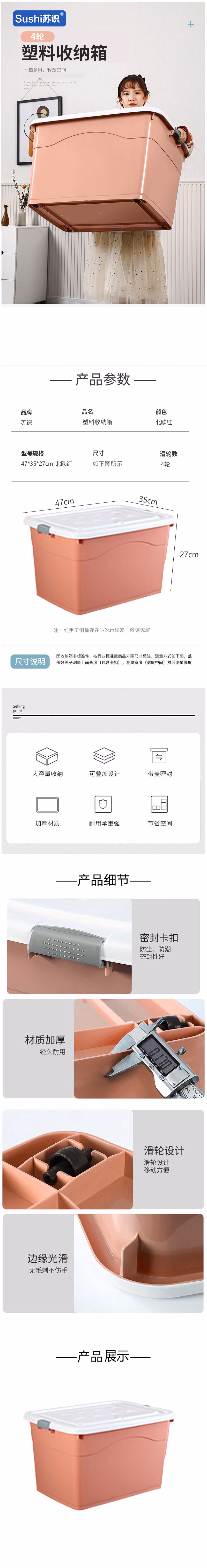 苏识 47*35 *27cm-北欧红 4轮 塑料收纳箱 (计价单位:个) 北欧红