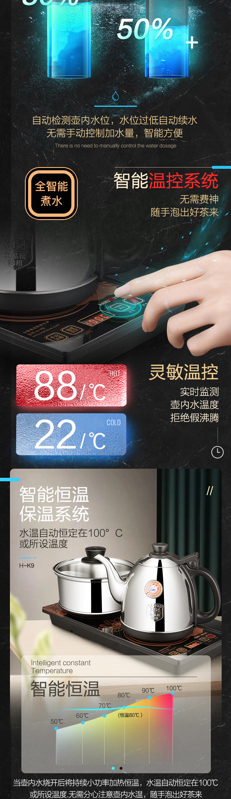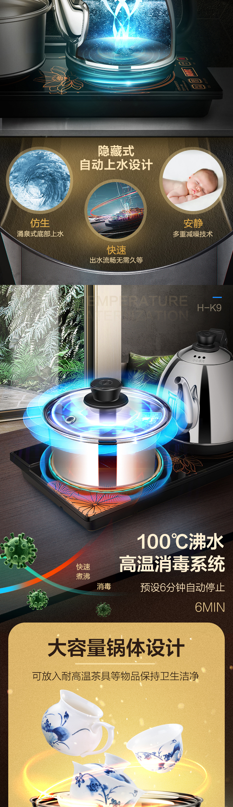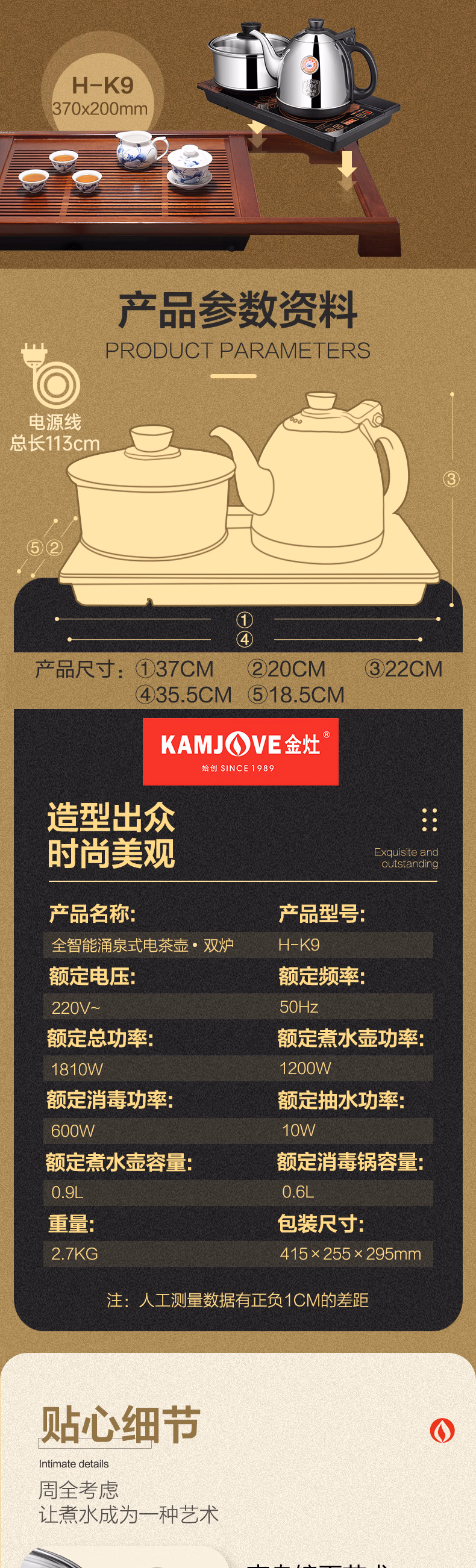 金灶(KAMJOVE)电水壶恒温电茶炉 涌泉式底部自动上水电热水壶 烧水壶 茶具抽水烧水茶具 H-K9【20*37cm台嵌两用】