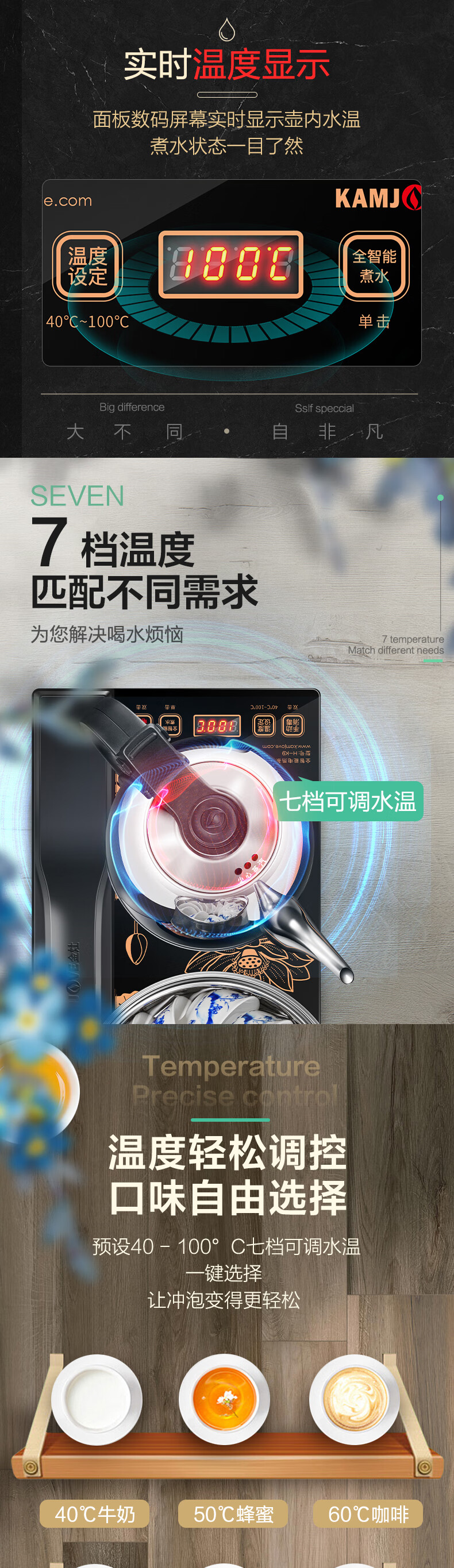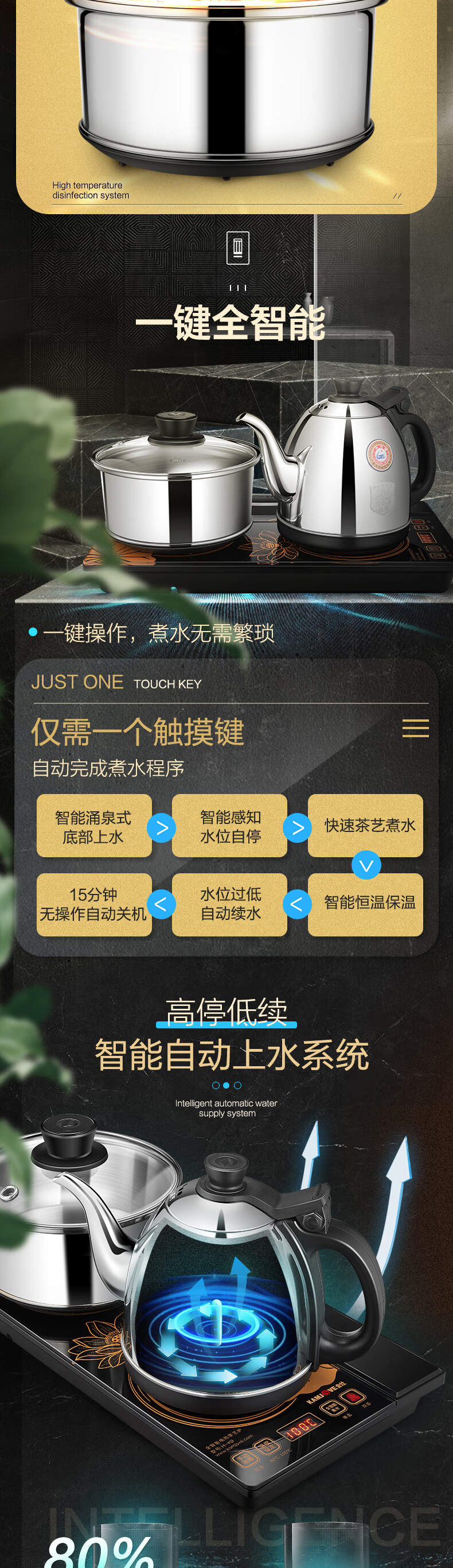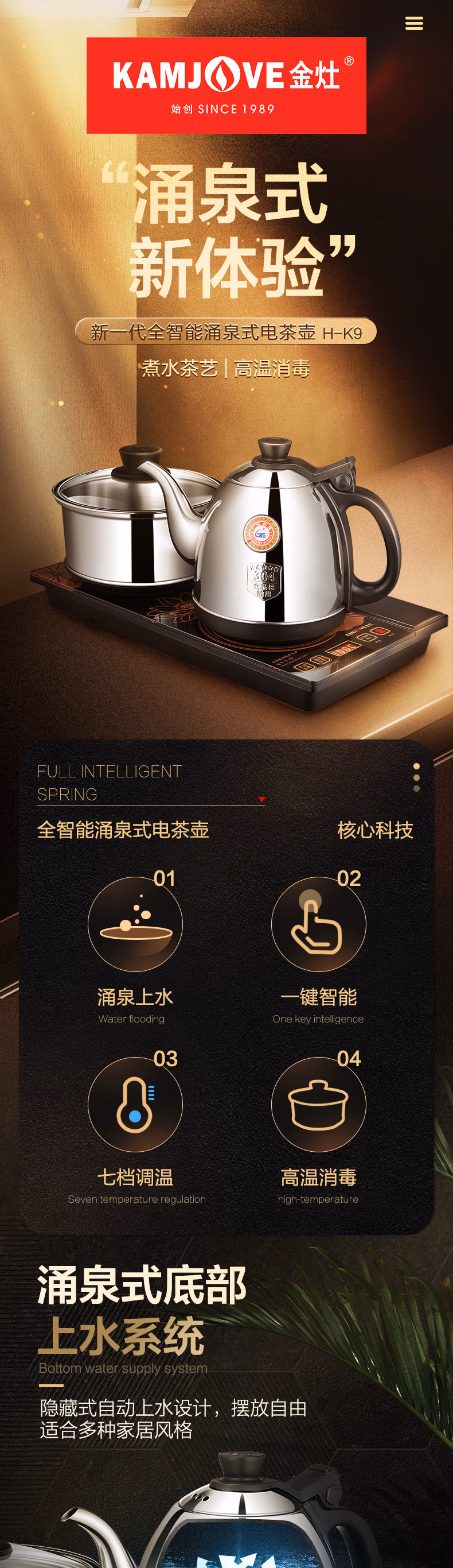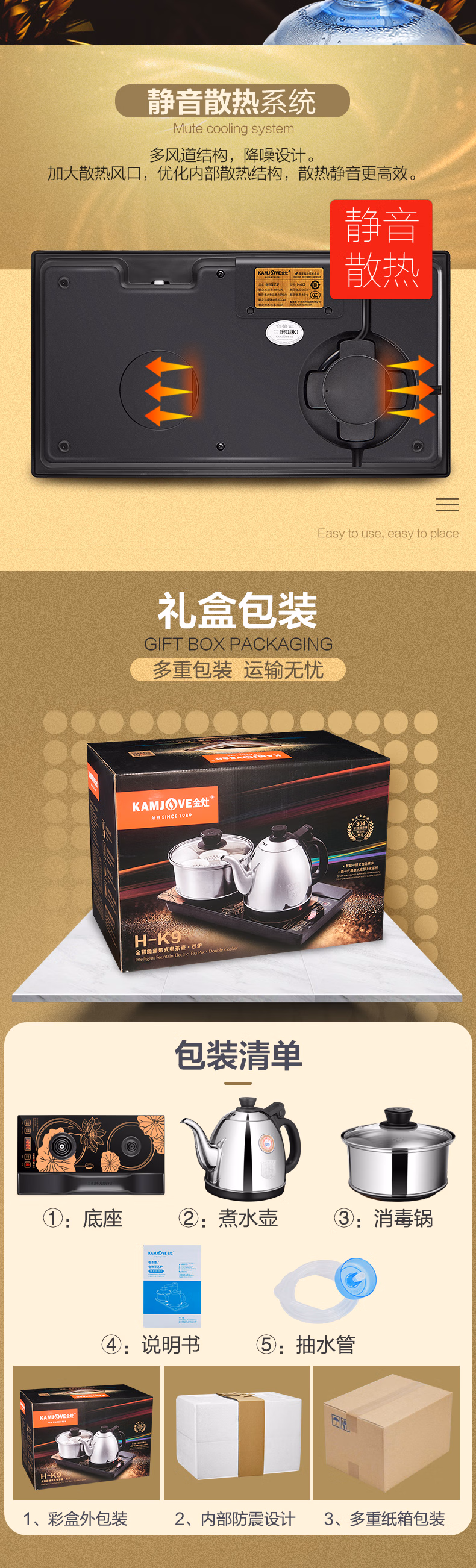 金灶(KAMJOVE)电水壶恒温电茶炉 涌泉式底部自动上水电热水壶 烧水壶 茶具抽水烧水茶具 H-K9【20*37cm台嵌两用】