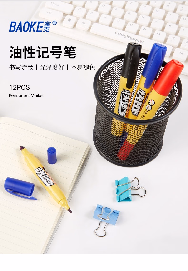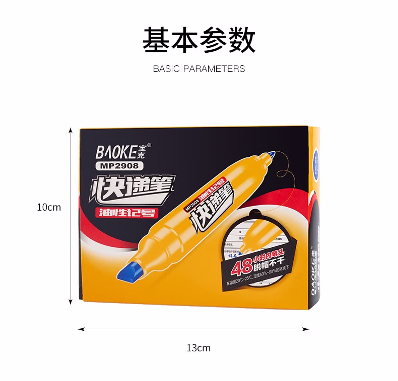 宝克(BAOKE) MP291 防水速干 记号笔 12.00 支/盒 (计价单位:盒) 黑色