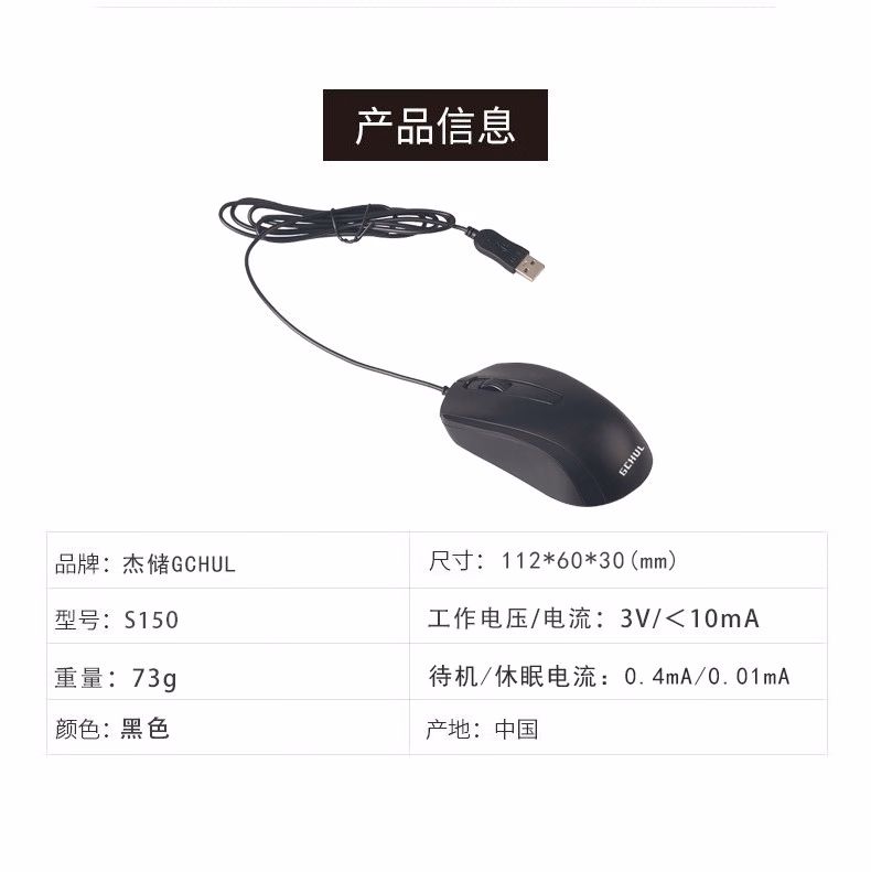 杰储(GCHUL) S150 有线静音办公 鼠标 (计价单位:个) 黑色