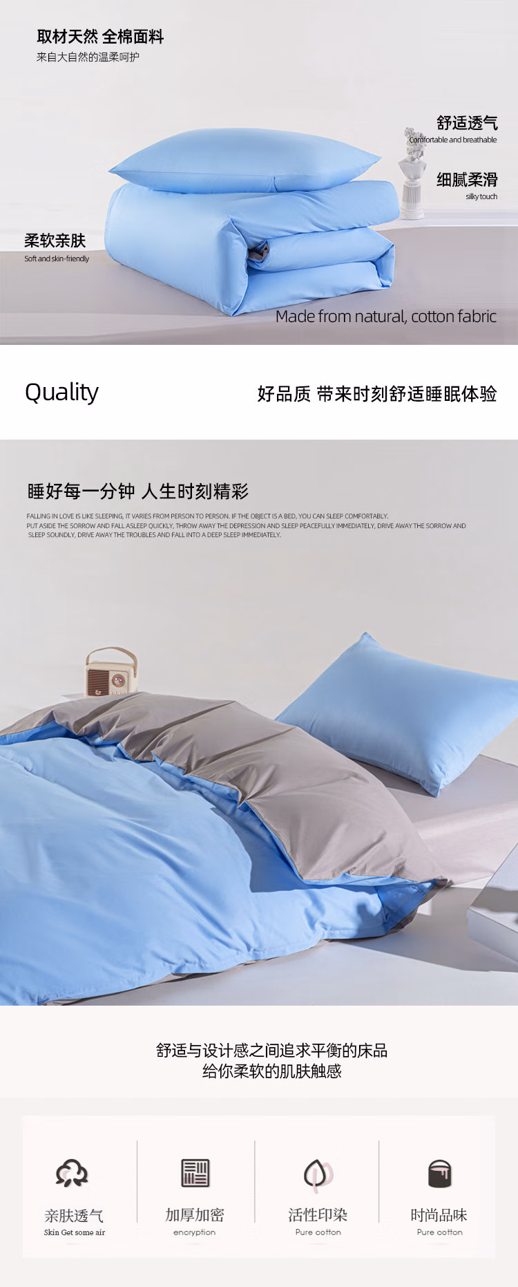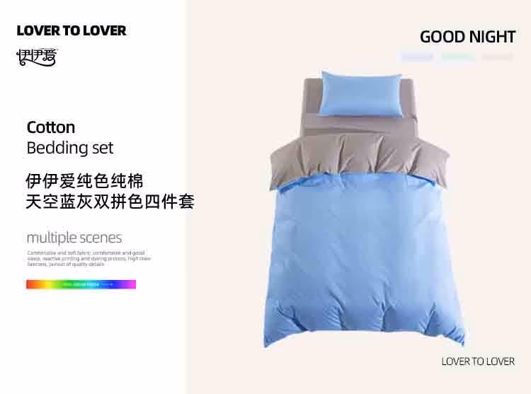 • 商品名称:伊伊爱纯棉天空蓝灰双拼色四件套 天空蓝灰 200*230cm/TJ0JD02302023