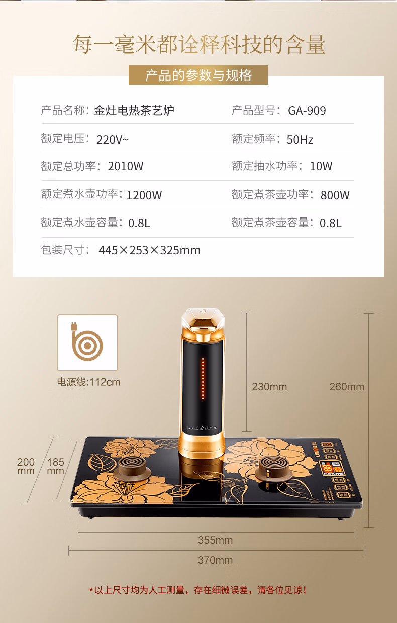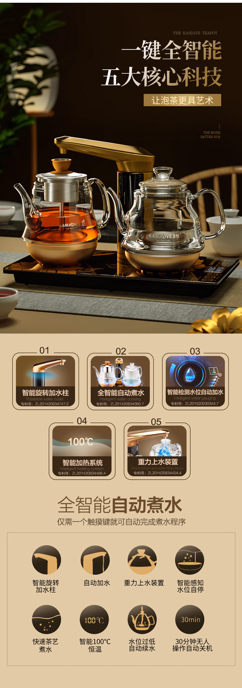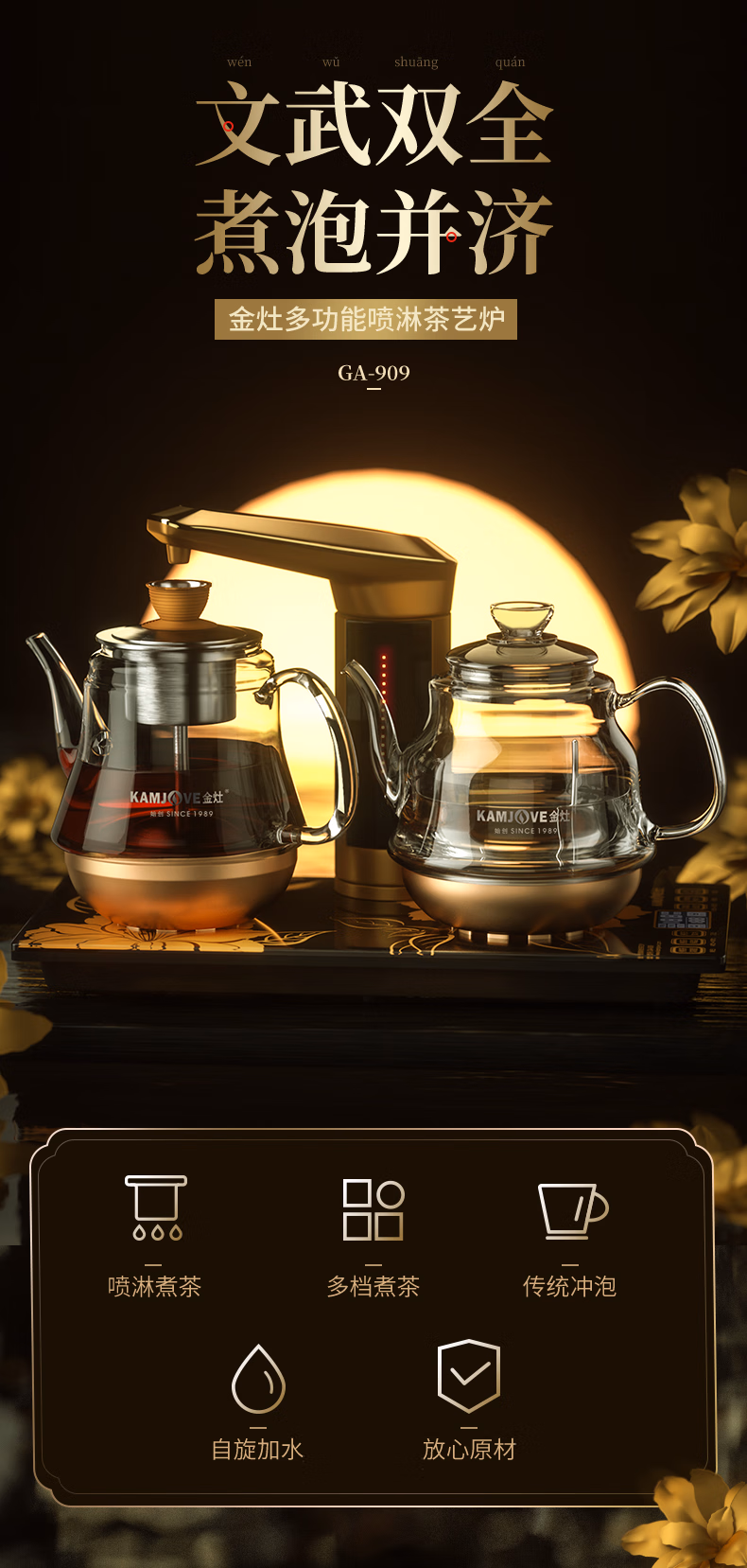 金灶(KAMJOVE) 自动上水电热水壶 煮茶器煮茶壶 烧水壶抽水烧水茶具茶道保温泡茶壶茶台烧水壶 GA-909多功能茶炉 单位:套