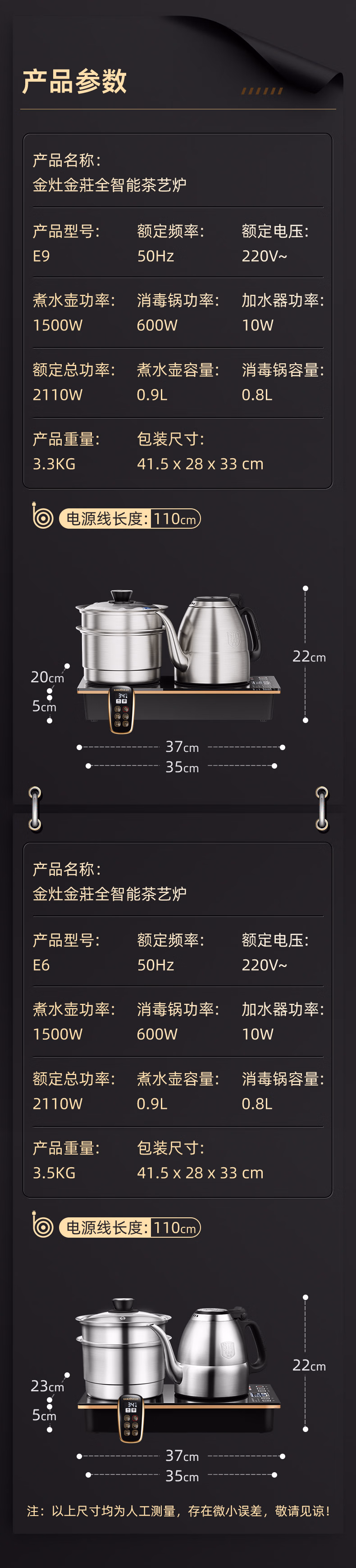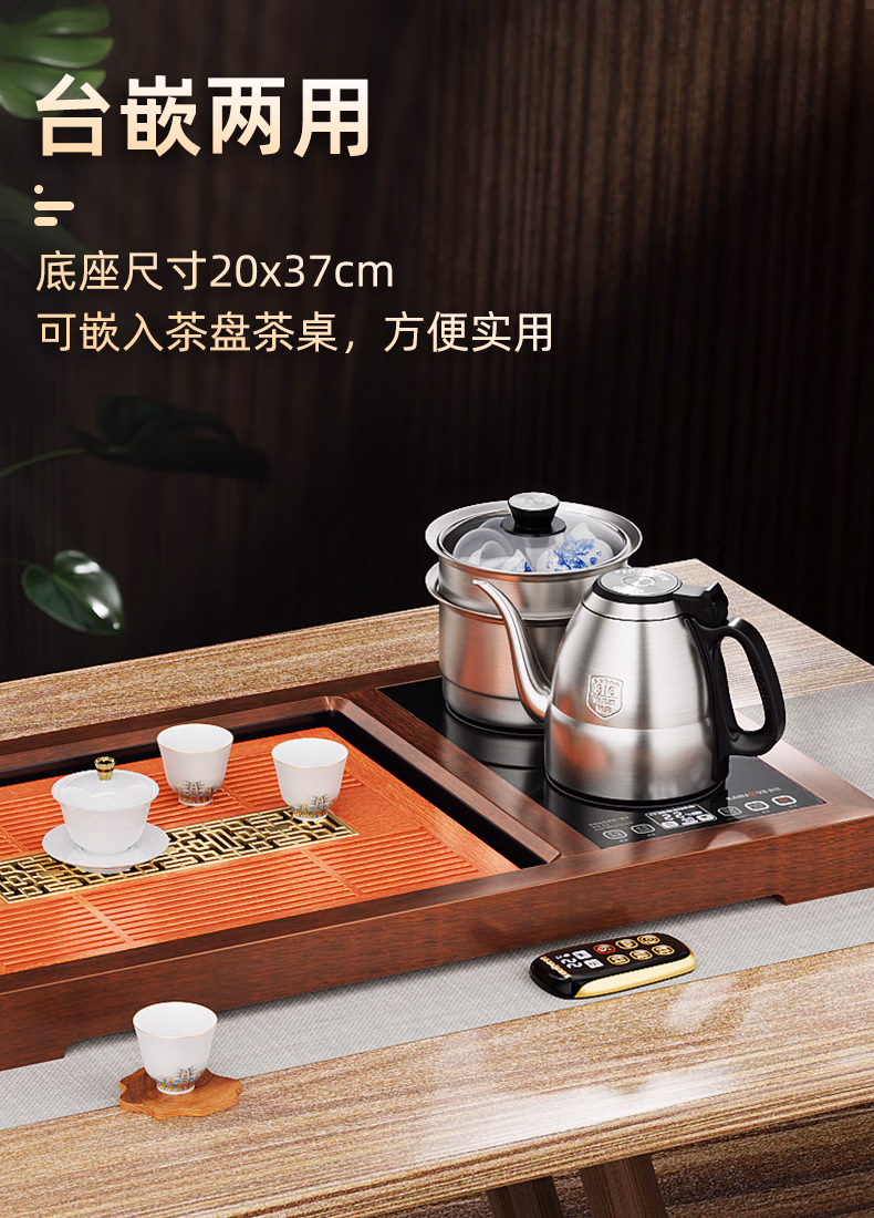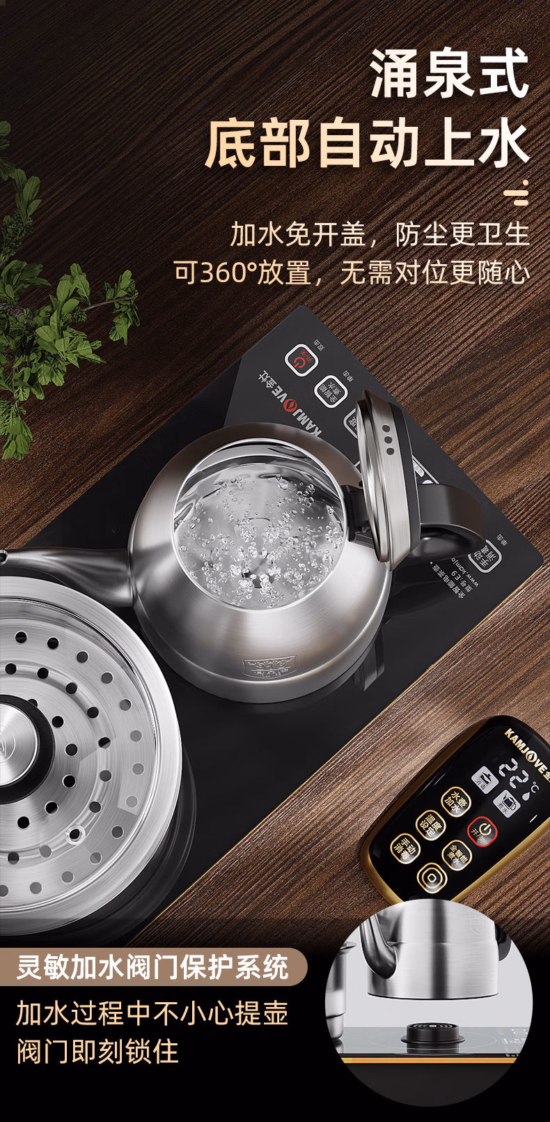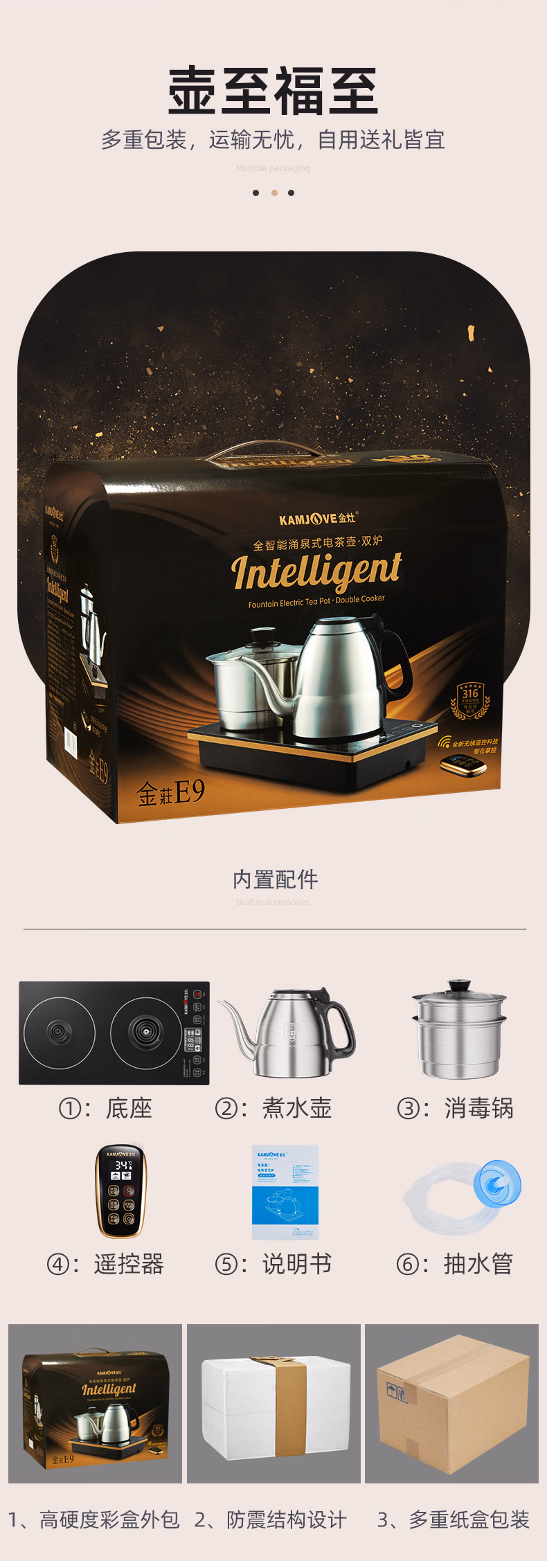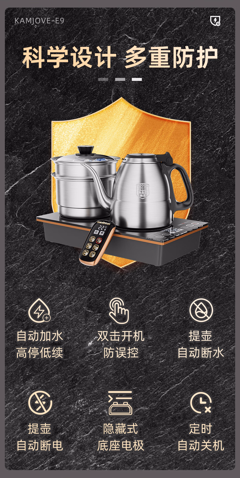 金灶(KAMJOVE) 全自动底部上水电热水壶泡茶壶烧水茶具自动电茶壶可嵌入茶盘烧水壶316不锈钢壶 E9(20*37cm) 单位:个