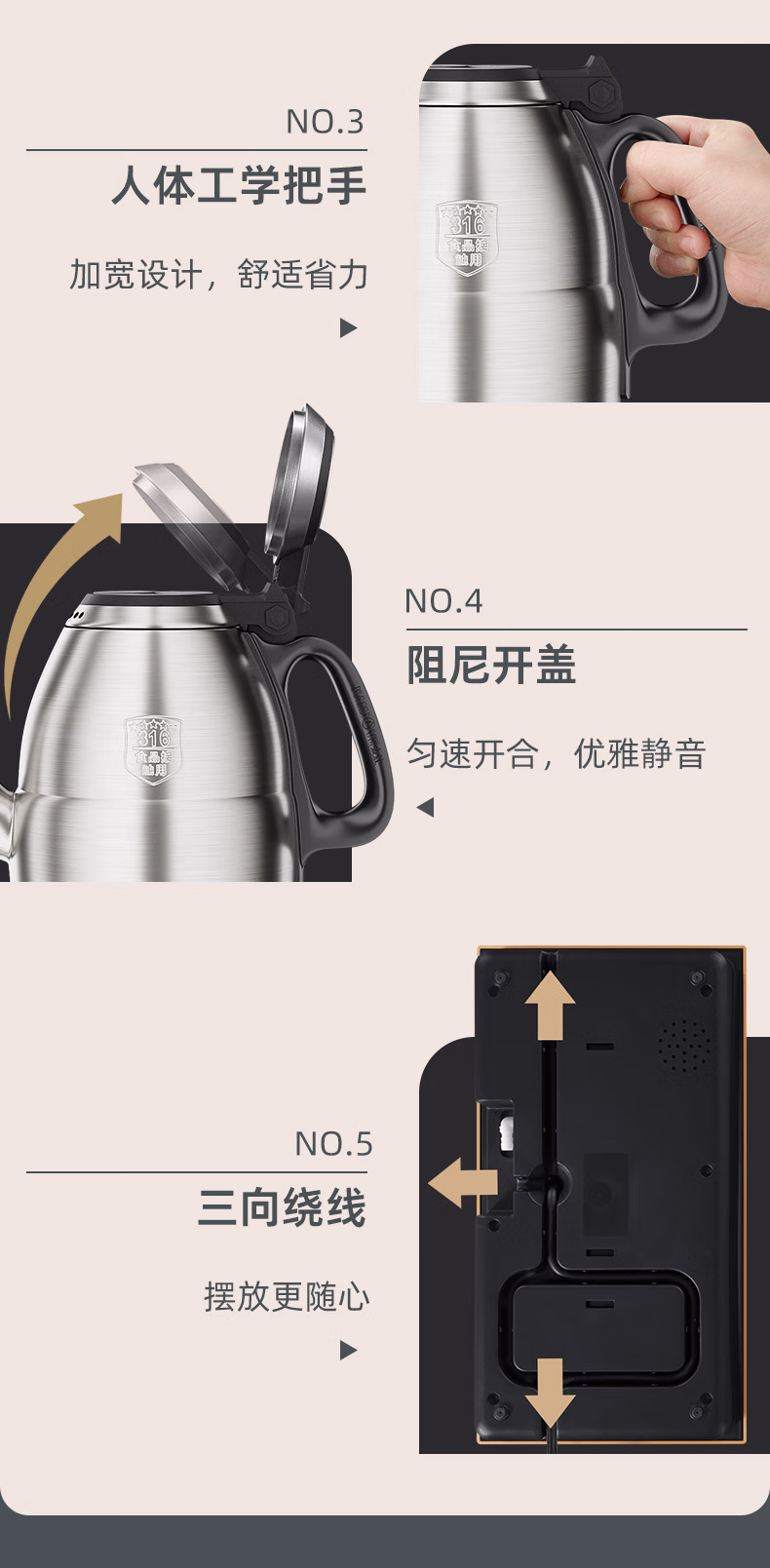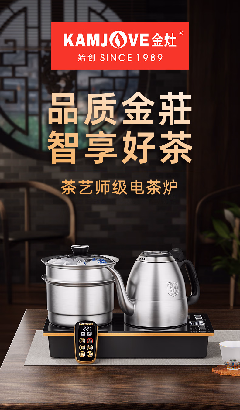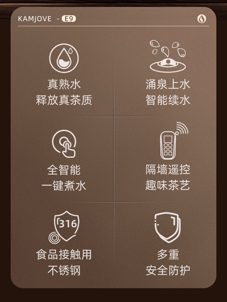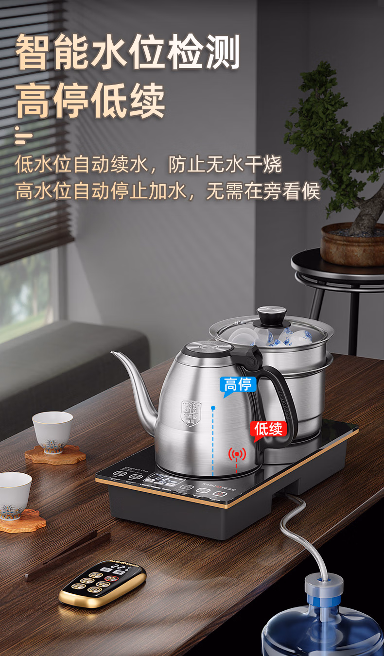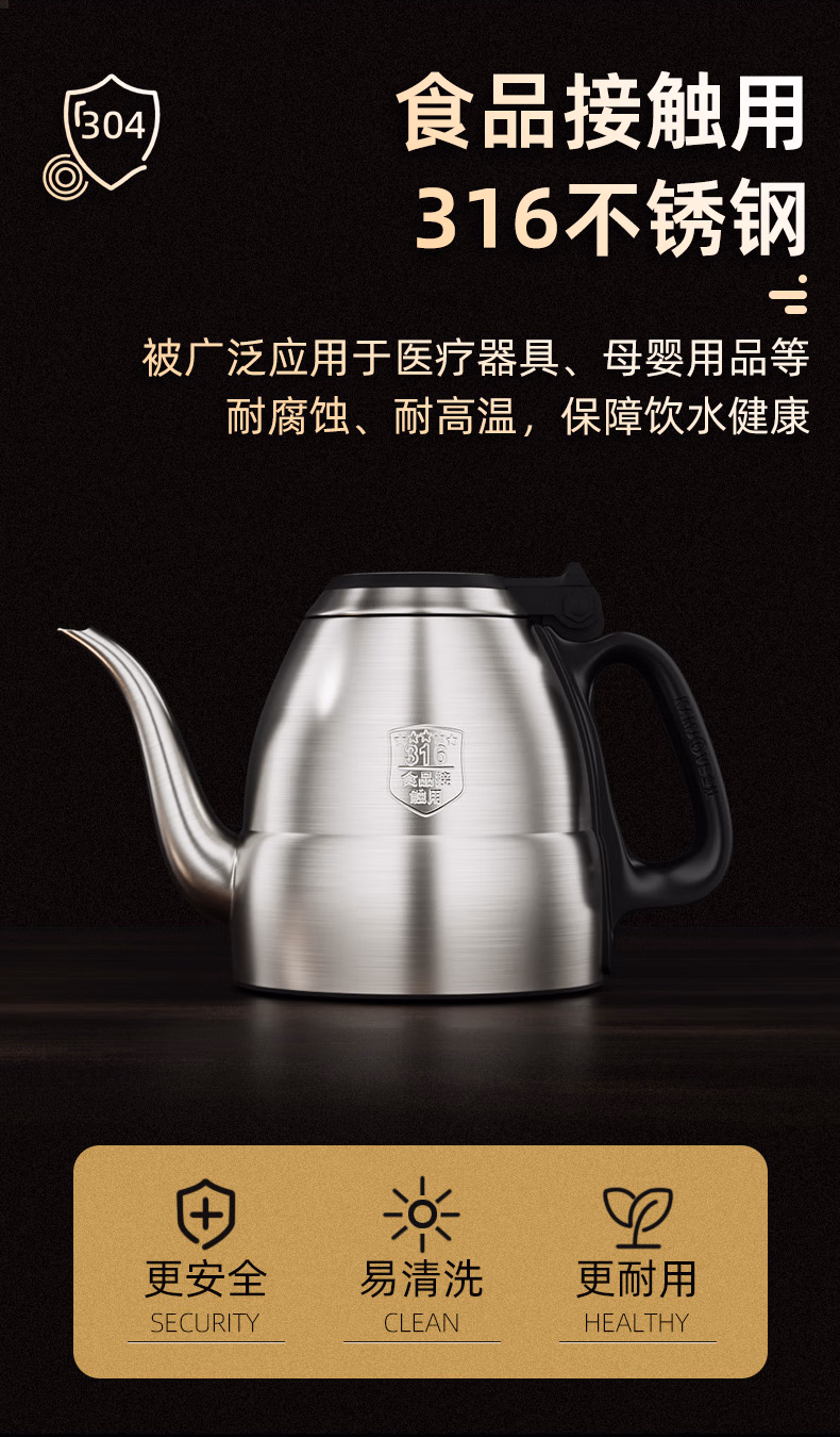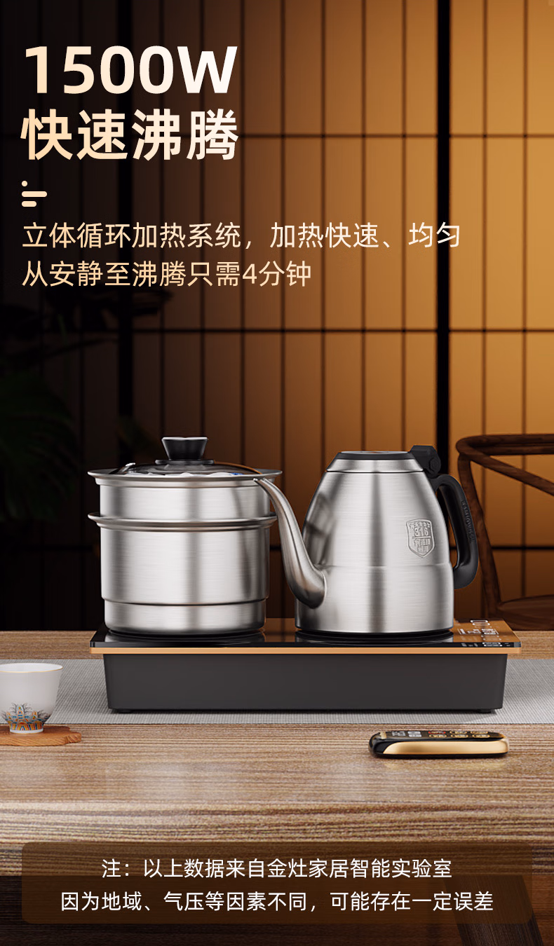 金灶(KAMJOVE) 全自动底部上水电热水壶泡茶壶烧水茶具自动电茶壶可嵌入茶盘烧水壶316不锈钢壶 E9(20*37cm) 单位:个