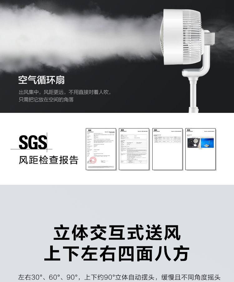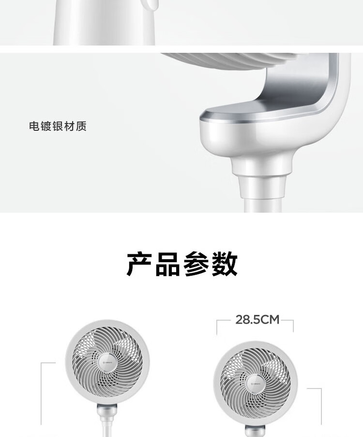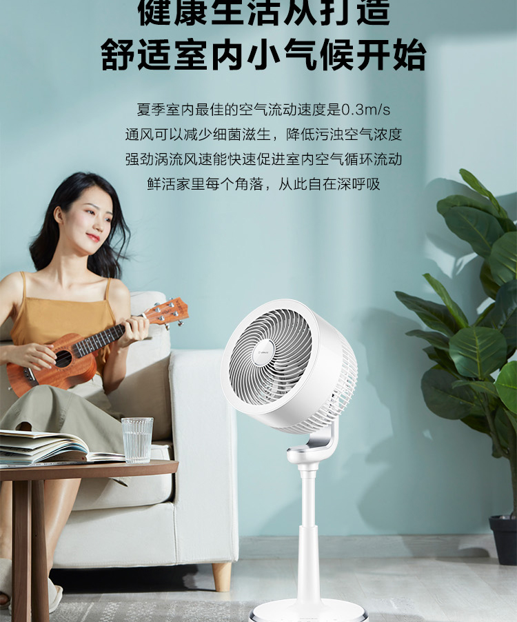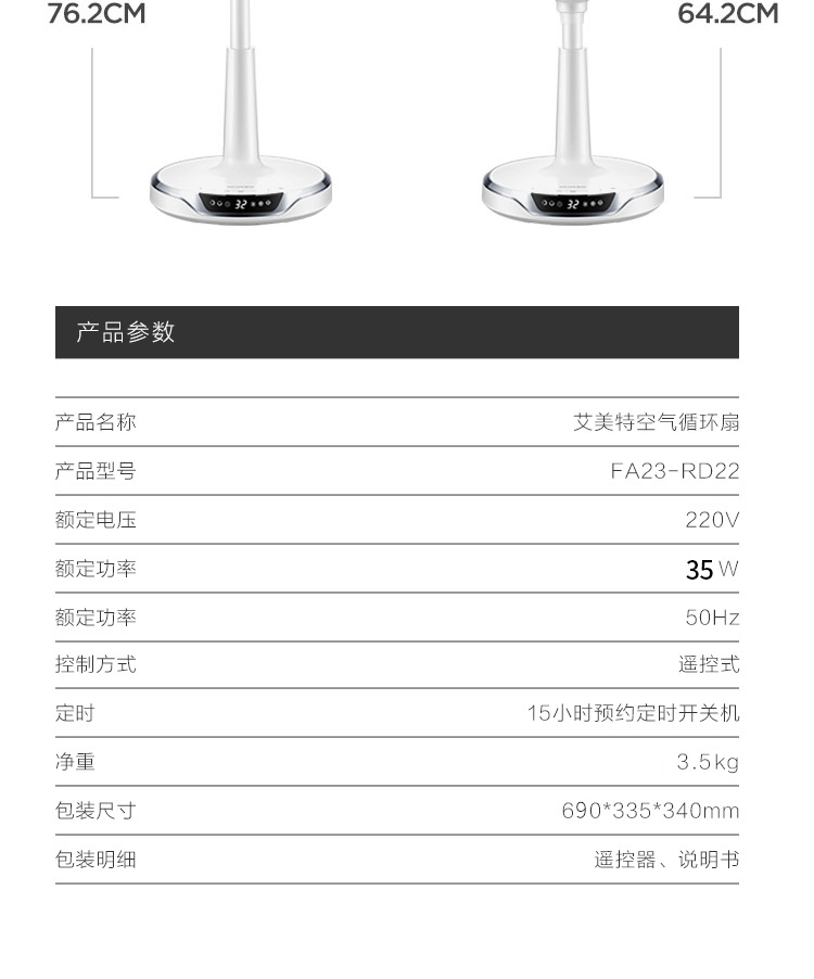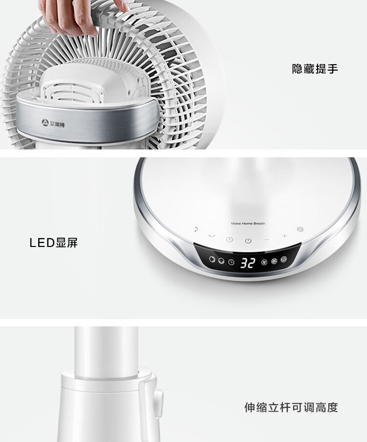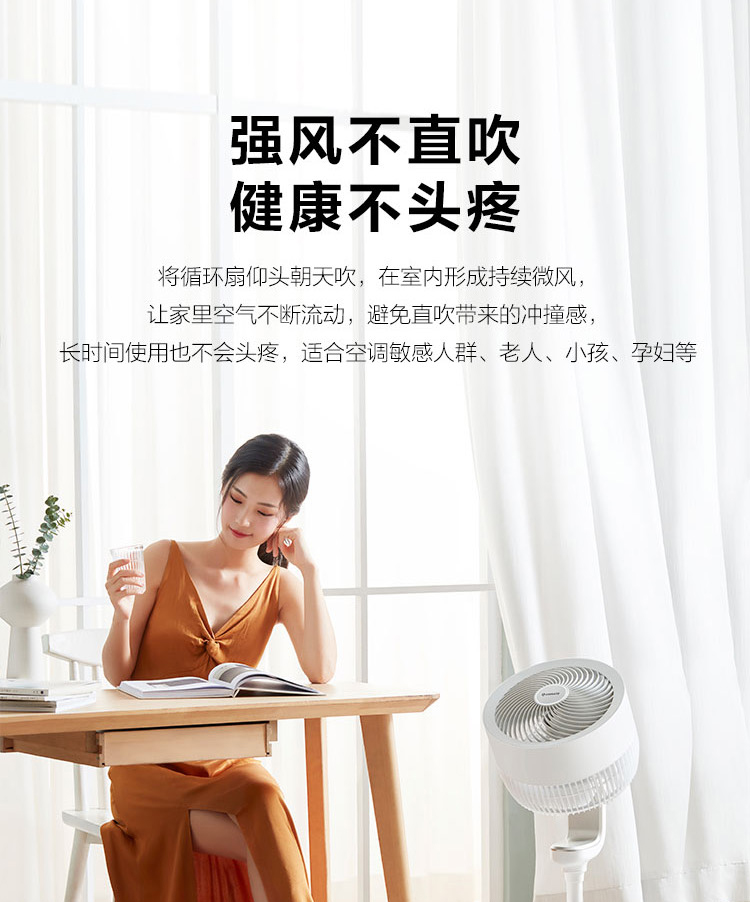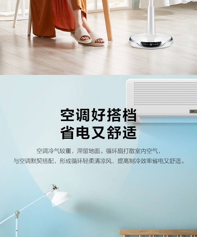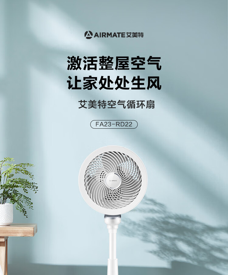 艾美特 循环扇 FA23-RD22 家用静音风扇 空气循环扇 白色
