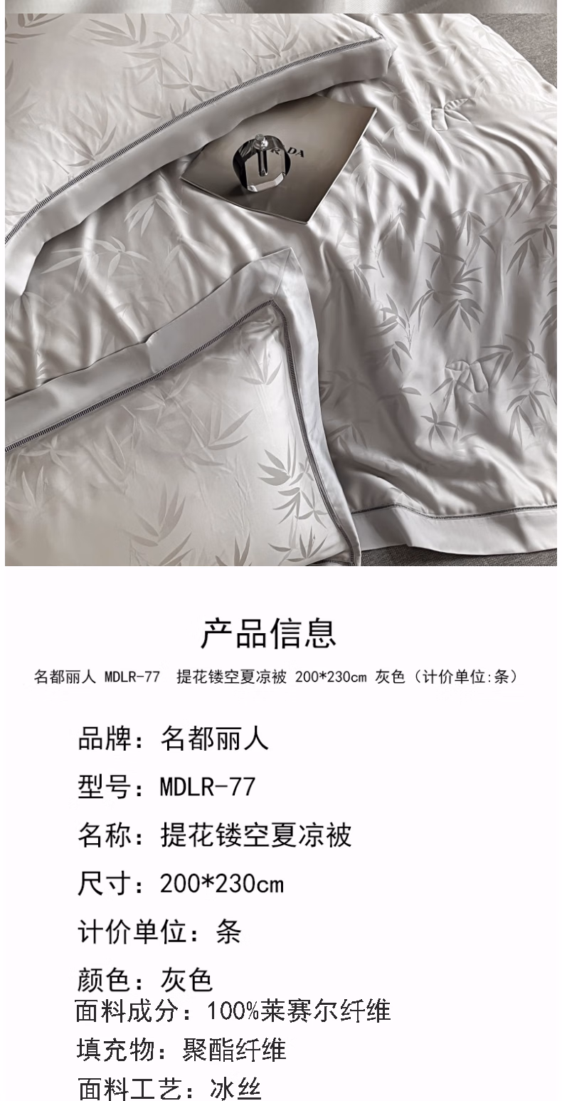 • 商品名称:名都丽人MDLR-77 提花镂空夏凉被 200*230cm 灰色(计价单位:条)