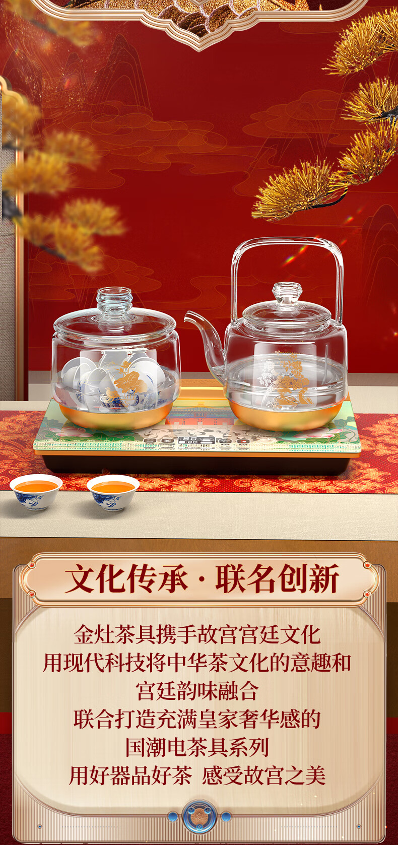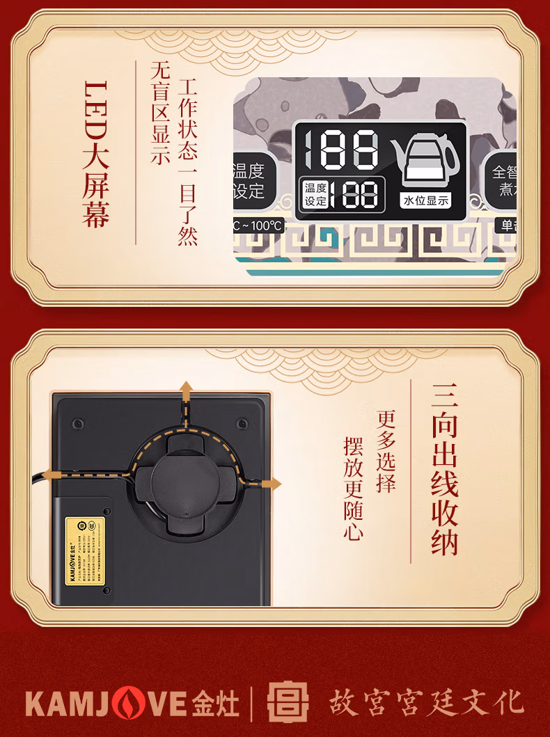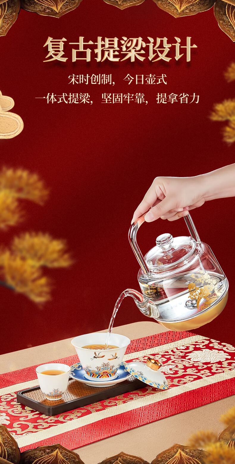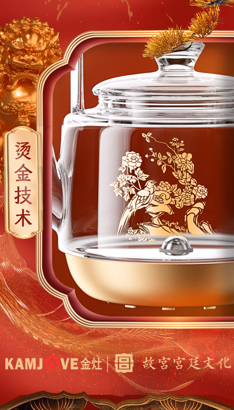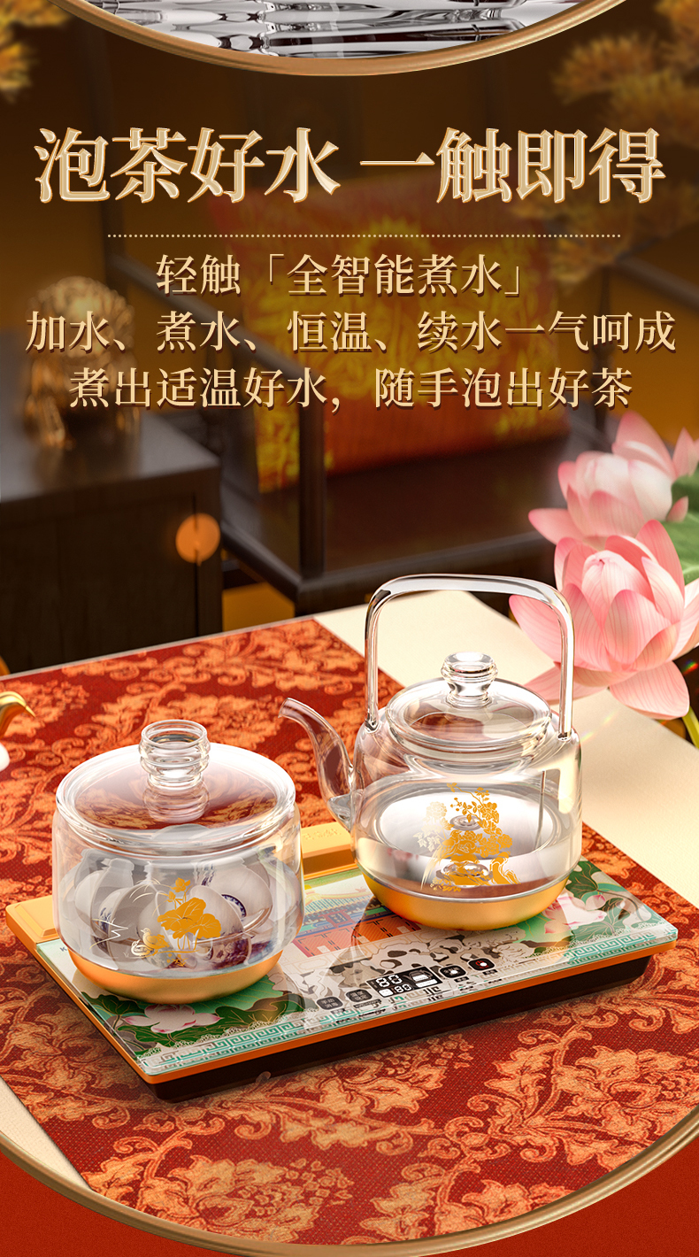 金灶(KAMJOVE) 故宫宫廷文化联名国潮全自动涌泉上水电热水壶底部加水电茶炉复古玻璃提梁壶茶壶 H18 单位:套