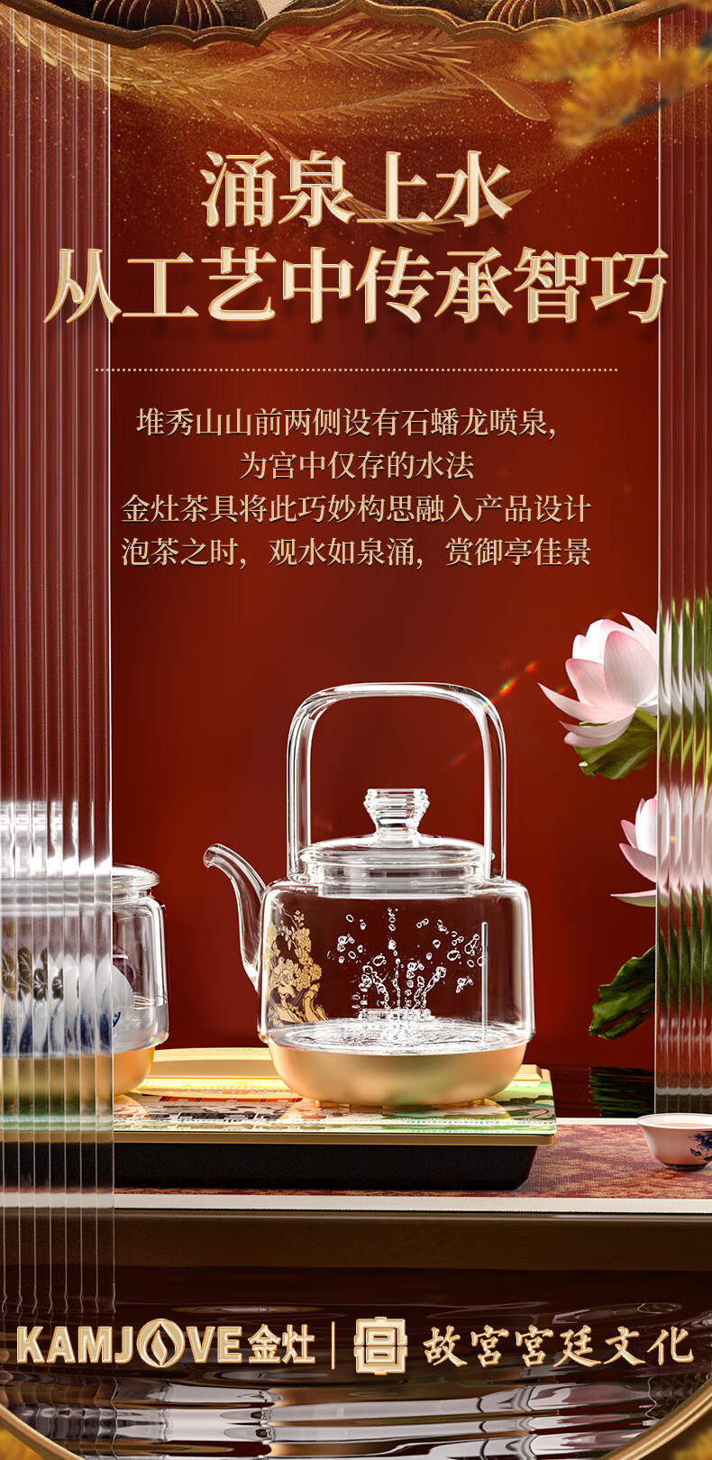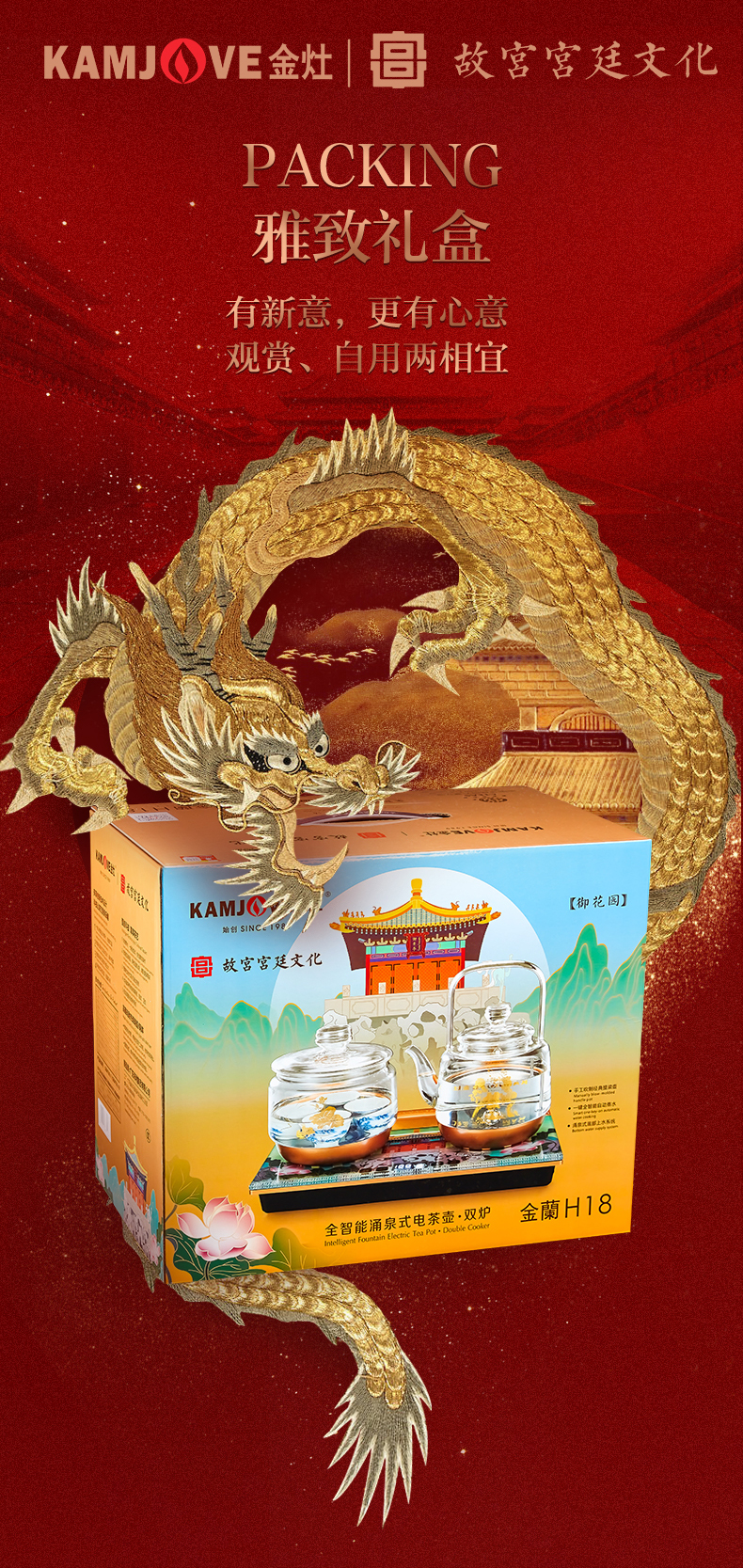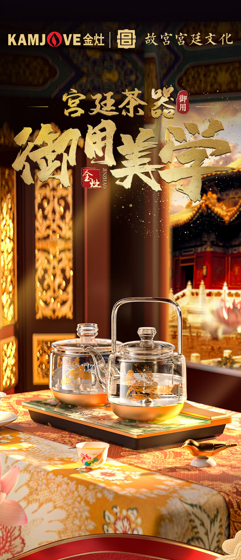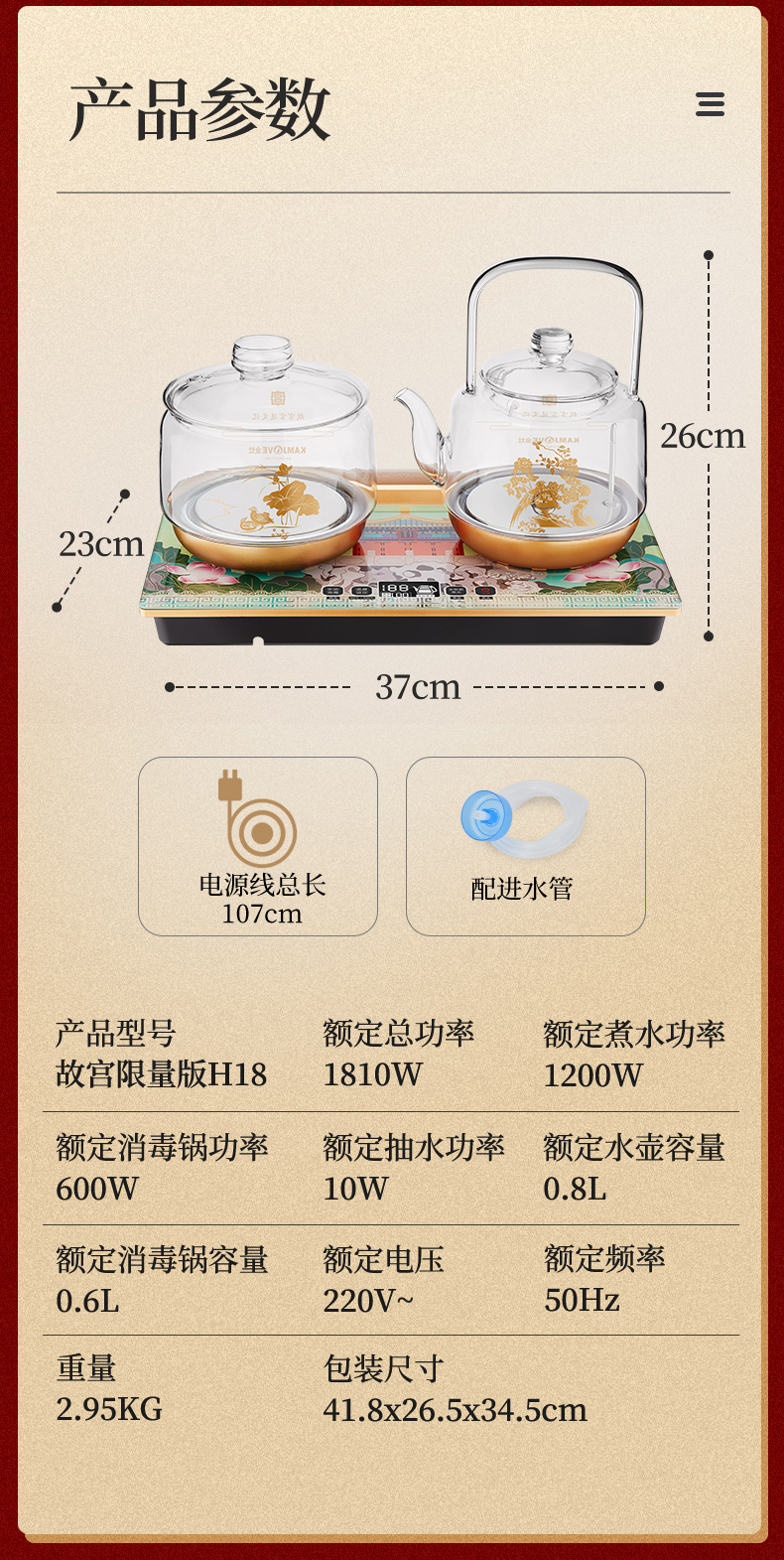 金灶(KAMJOVE) 故宫宫廷文化联名国潮全自动涌泉上水电热水壶底部加水电茶炉复古玻璃提梁壶茶壶 H18 单位:套