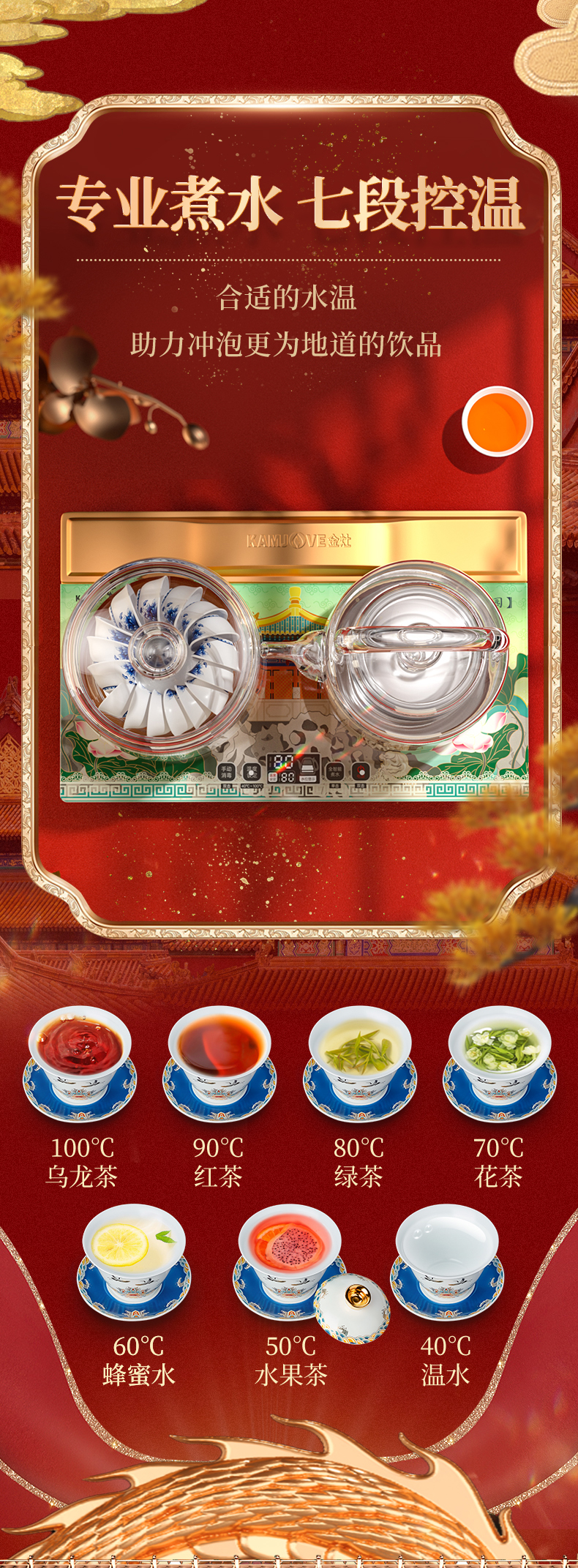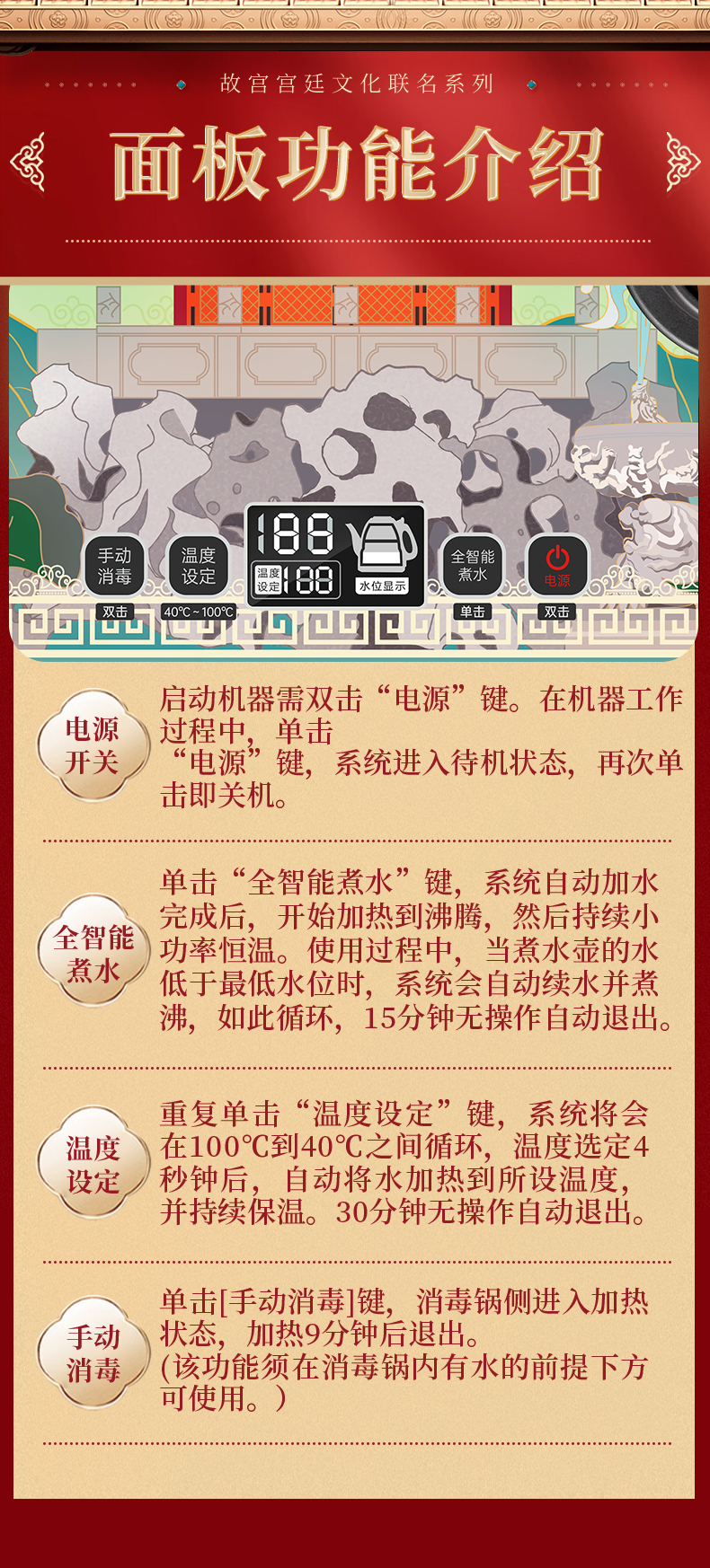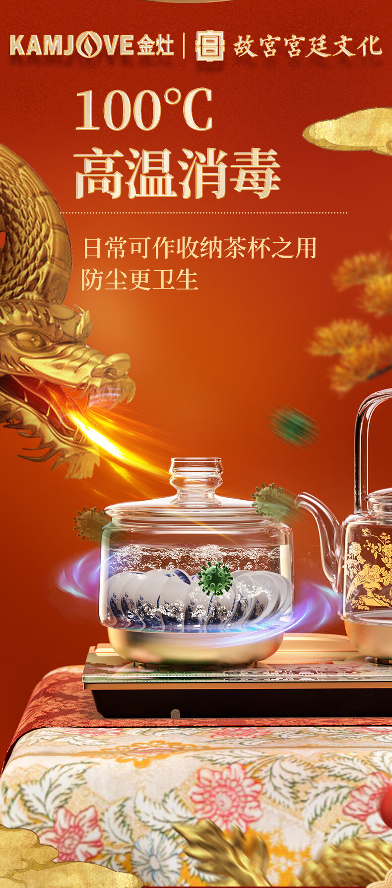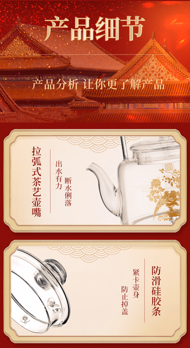 金灶(KAMJOVE) 故宫宫廷文化联名国潮全自动涌泉上水电热水壶底部加水电茶炉复古玻璃提梁壶茶壶 H18 单位:套