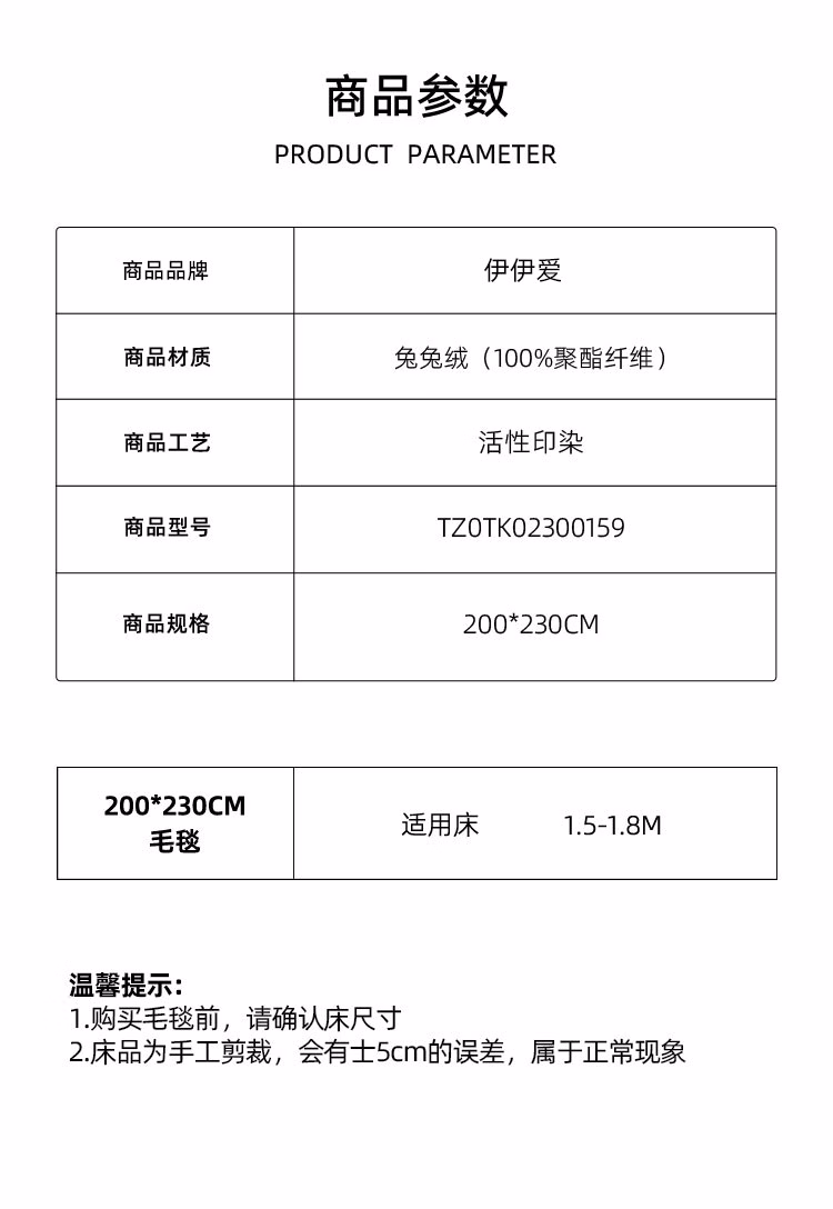 • 商品名称:伊伊爱玉兔绒毛毯 香奈紫 200*230cm/TZ0TK02300159