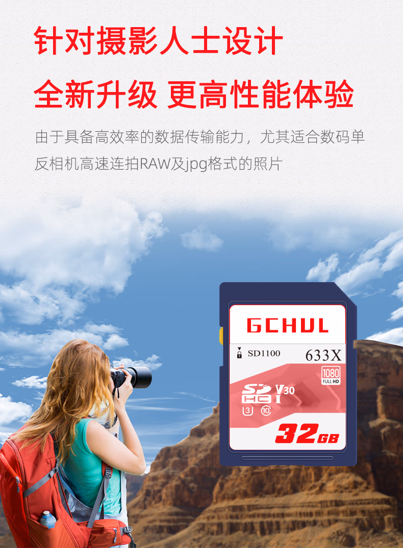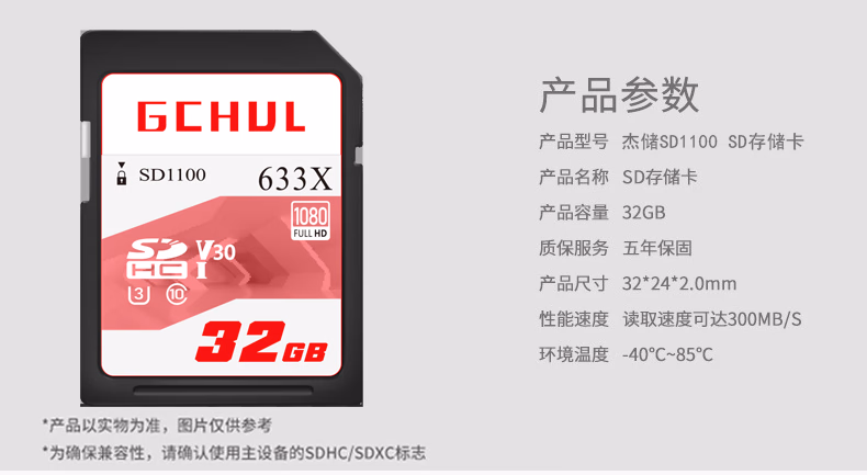 • 商品名称:杰储(GCHUL) SD1100 32G SD卡 存储卡 (计价单位:张) 灰色