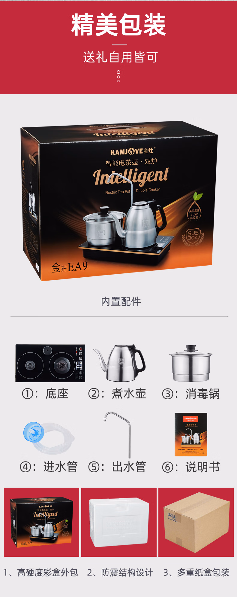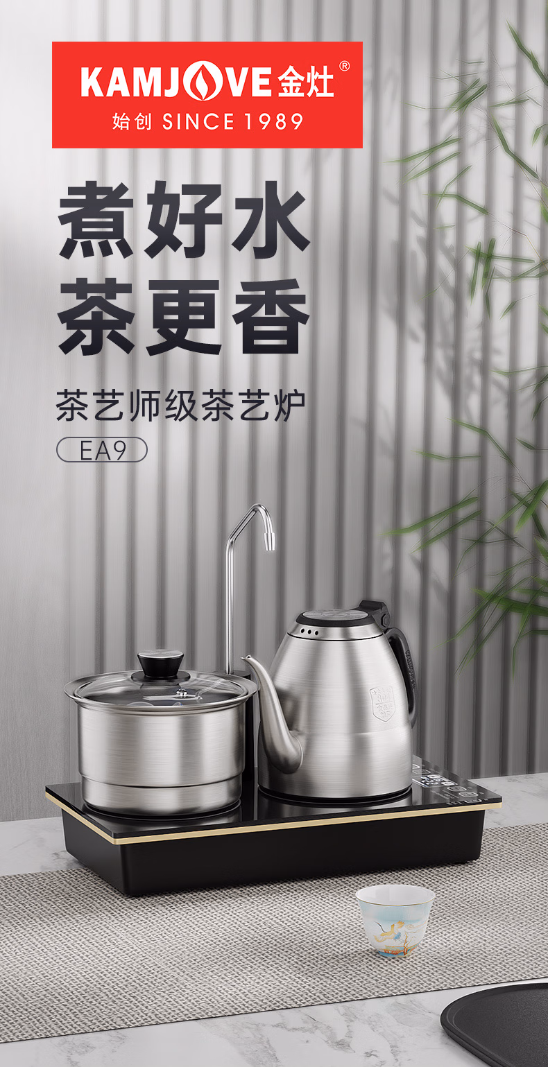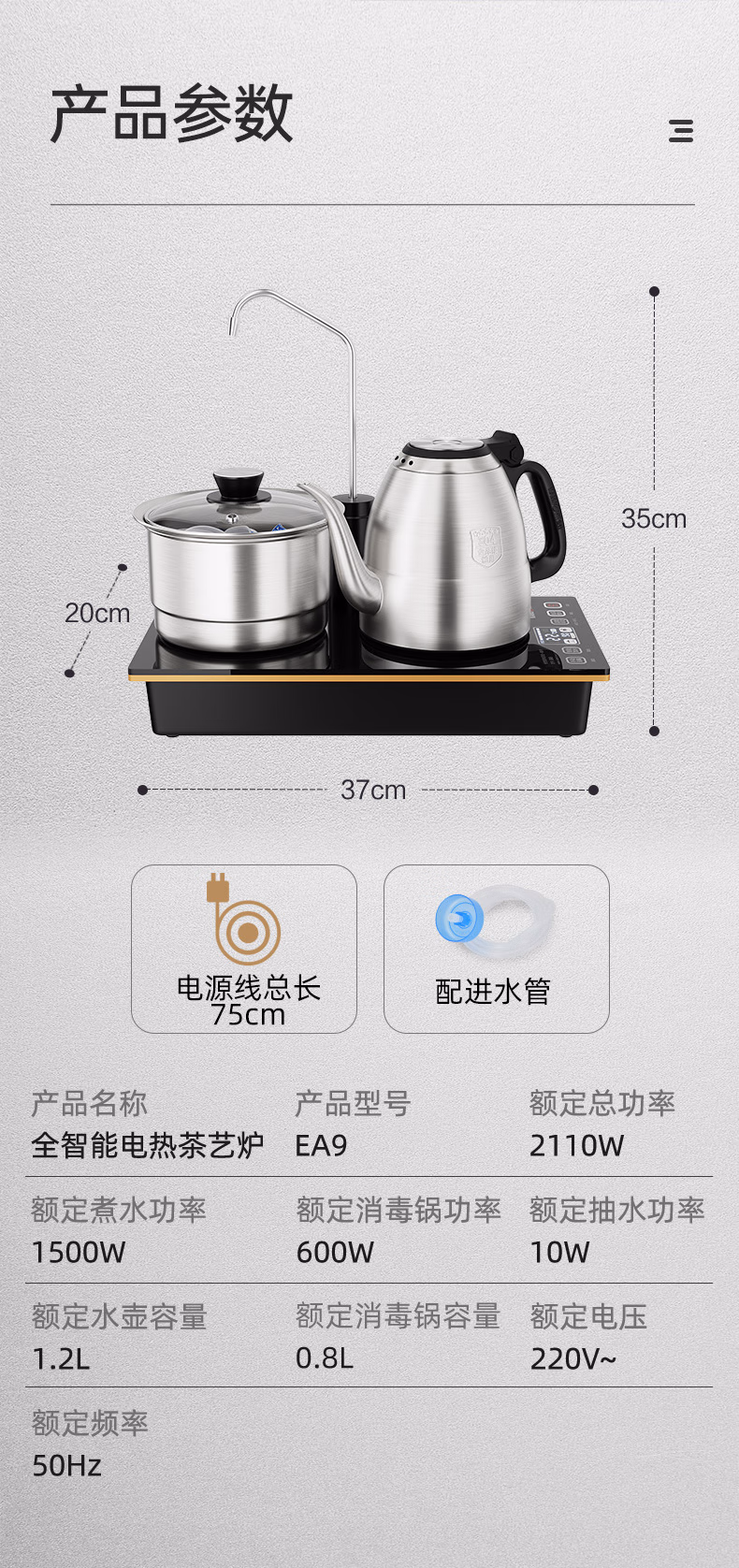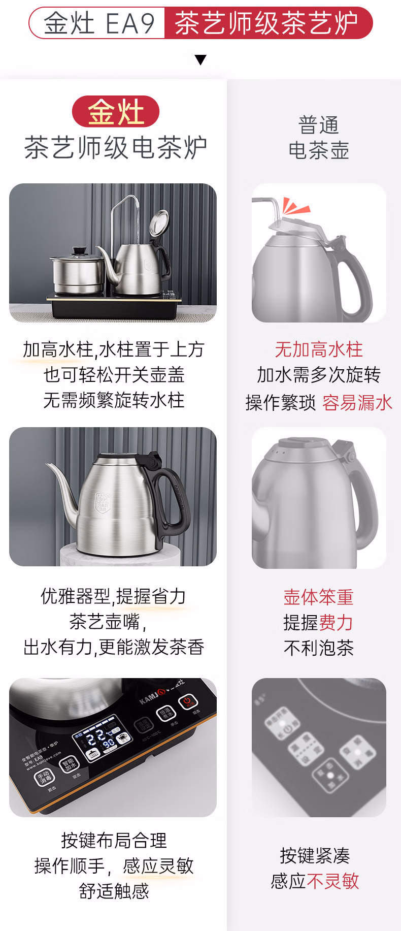 金灶(KAMJOVE) 自动上水电热水壶恒温壶保温烧水壶茶台烧水壶家用电水壶1.2L大容量开水壶茶壶 EA9 单位:套