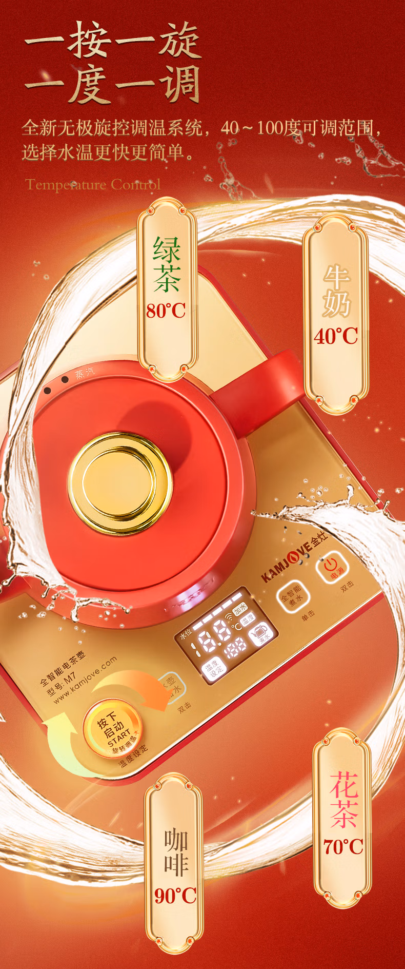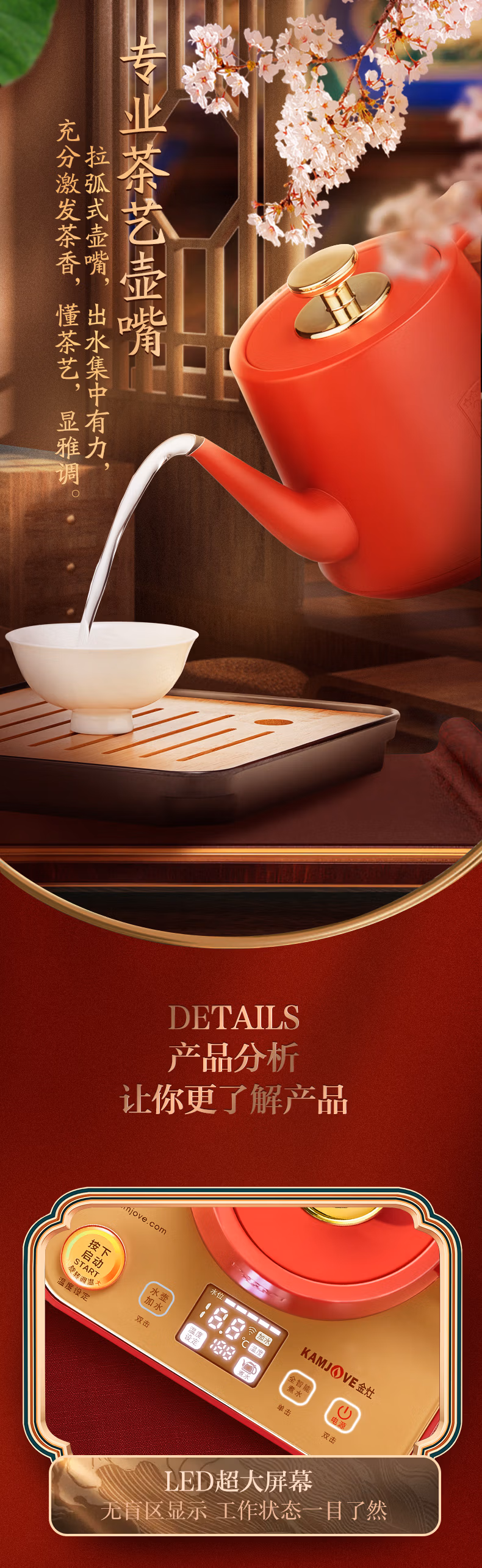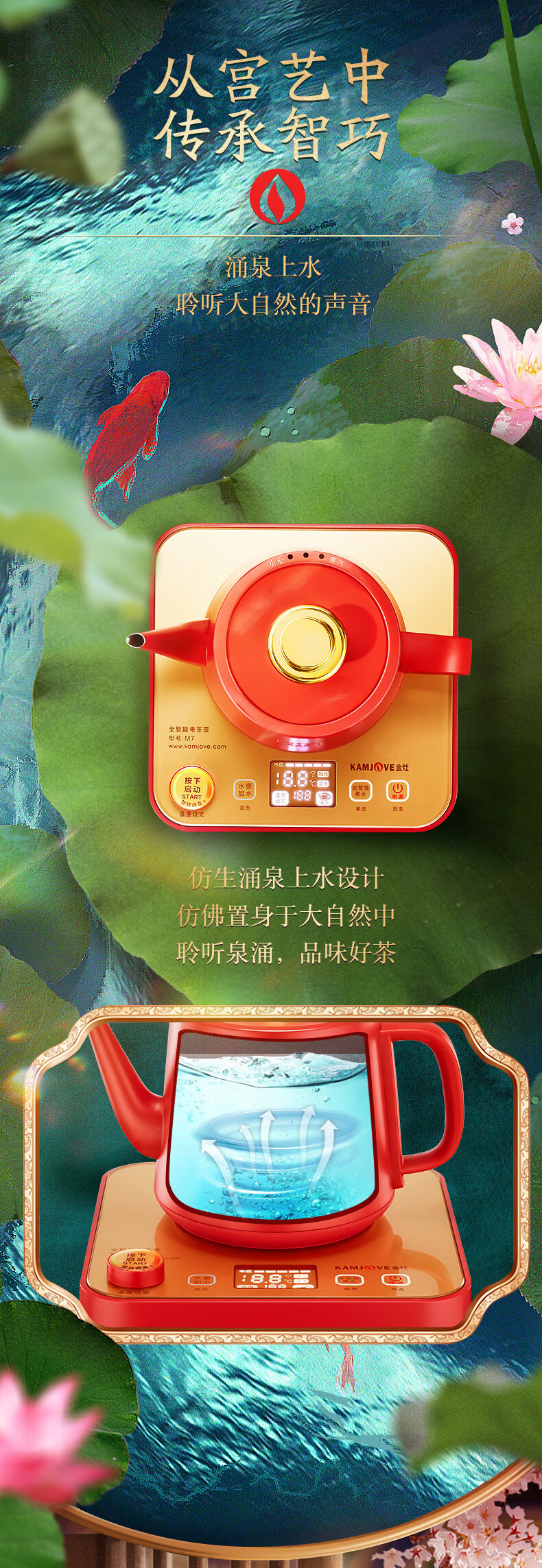 金灶(KAMJOVE)涌泉式底部上水自动上水电热水壶烧水壶保温一体泡茶专用煮水壶手机APP控制 M7 红色 单位:套
