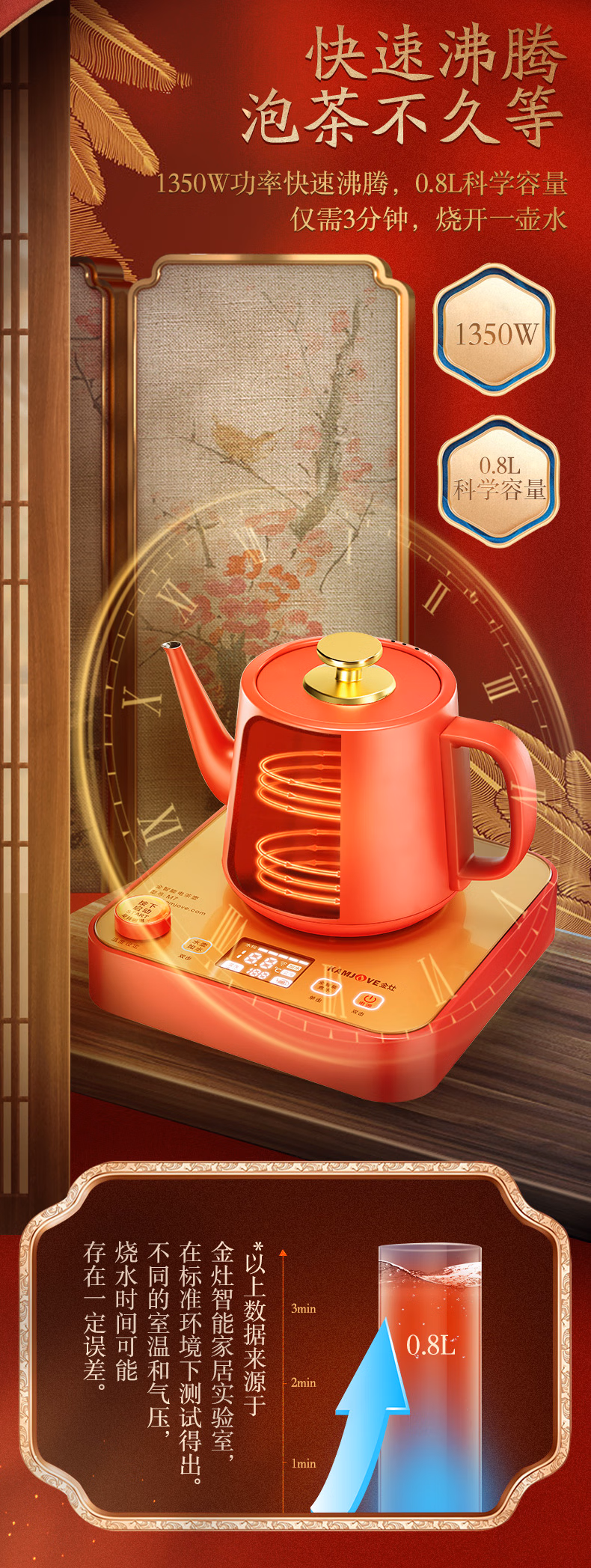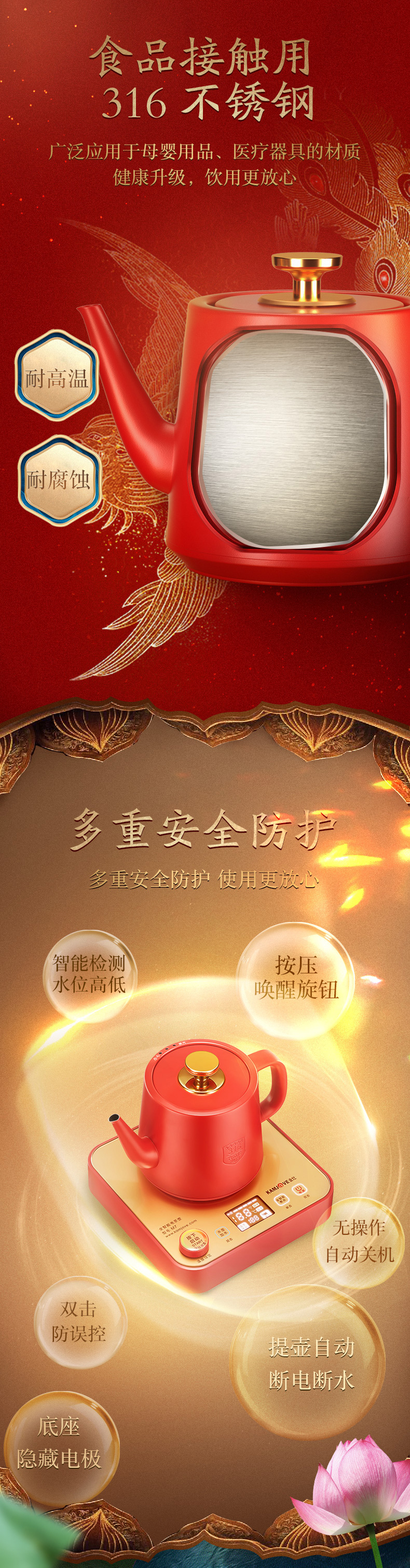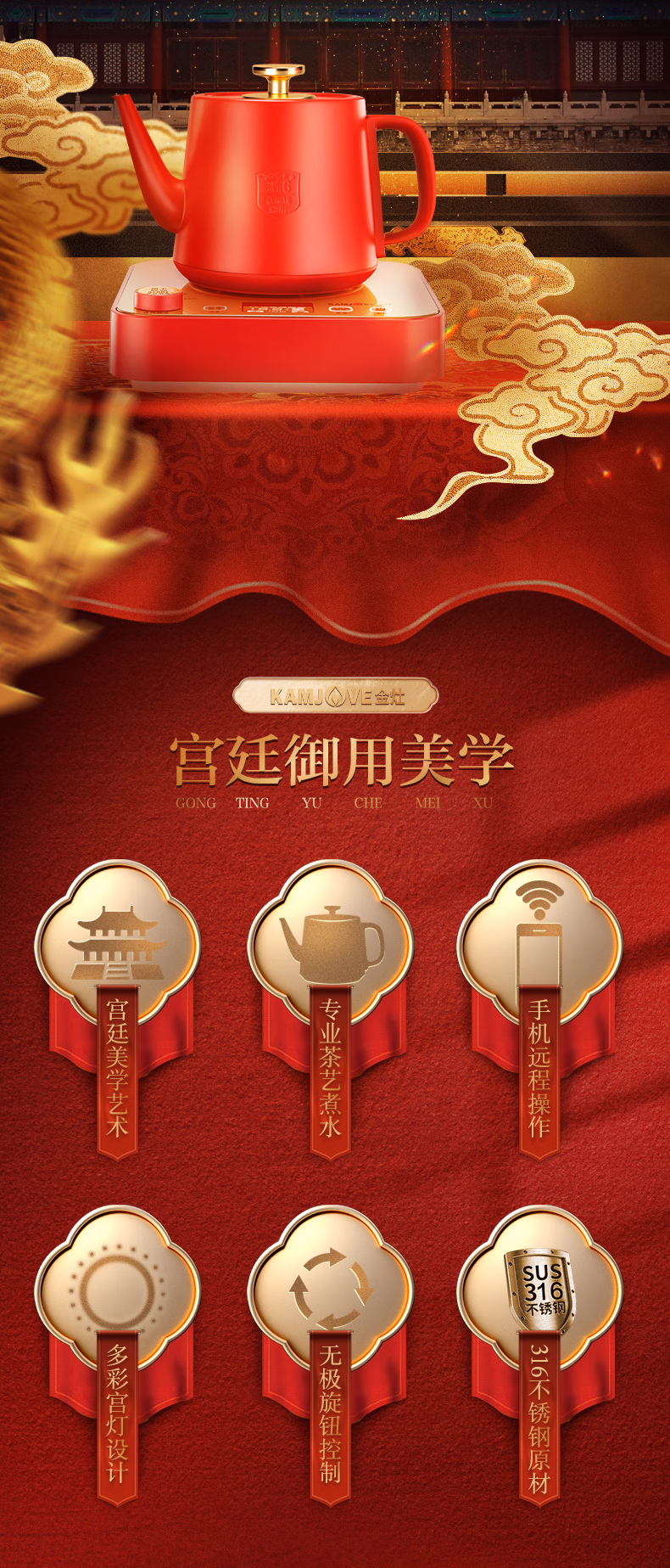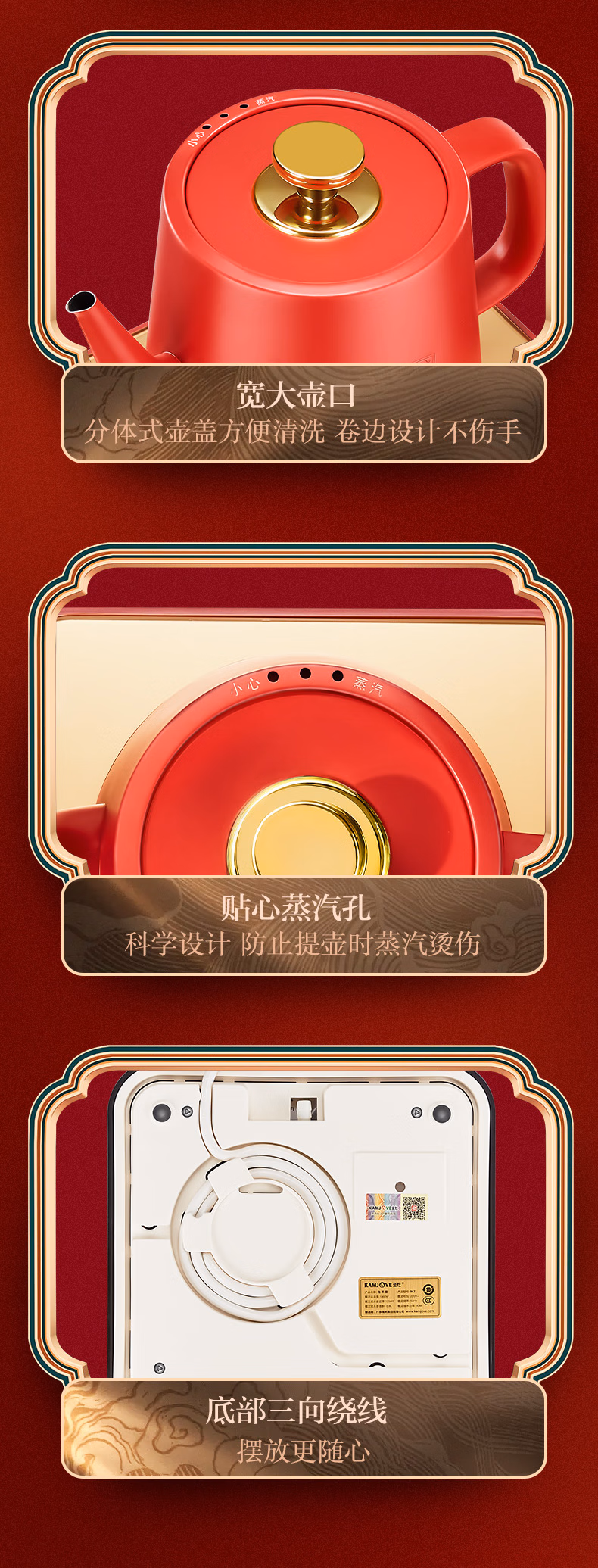 金灶(KAMJOVE)涌泉式底部上水自动上水电热水壶烧水壶保温一体泡茶专用煮水壶手机APP控制 M7 红色 单位:套