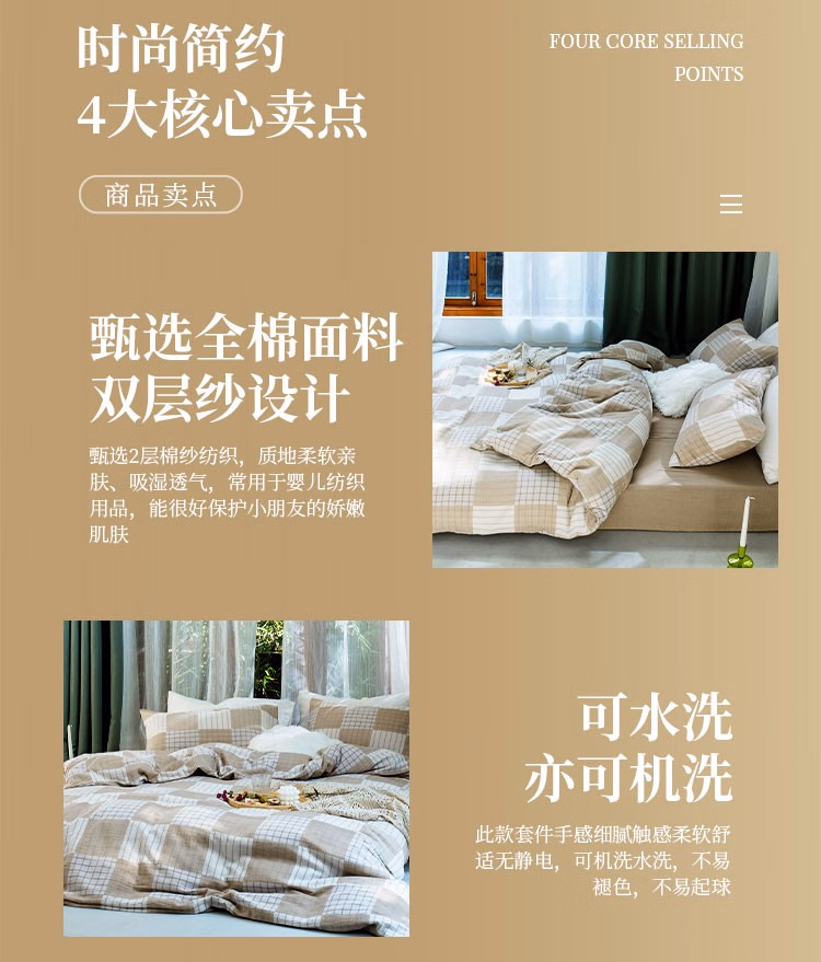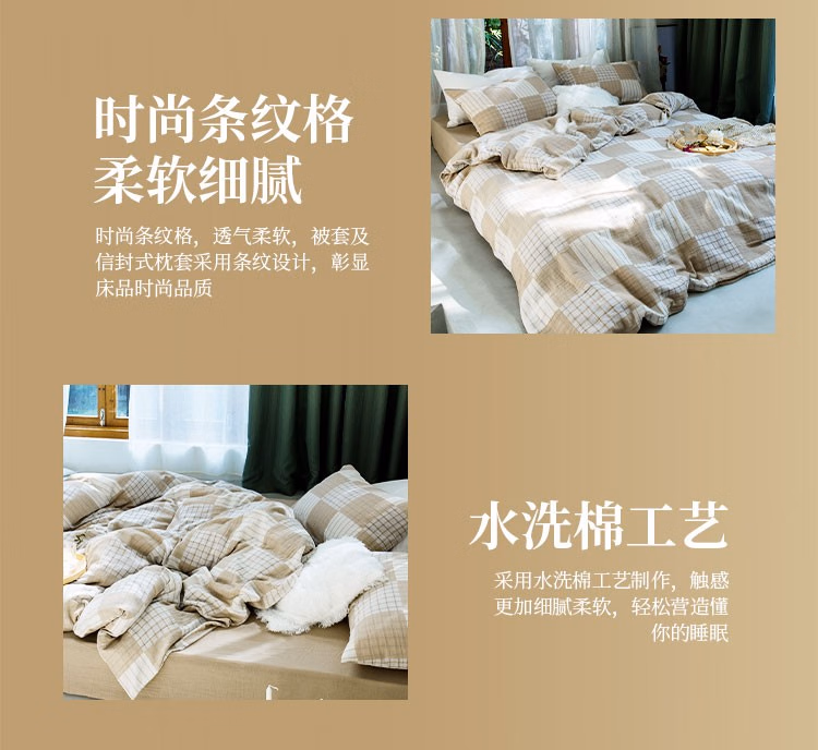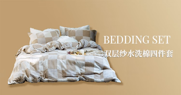伊伊爱 TJ0SZ02201459 /200*230cm 双层纱水洗棉四件套 (计价单位:套) 浅咖格