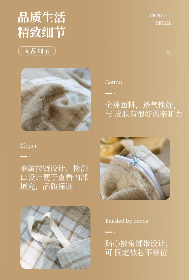 • 商品名称:伊伊爱 双层纱浅咖格系列四件套 浅咖格 200*230cm/TJ0SZ02201459