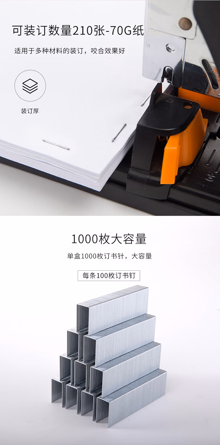 得力0014厚层订书钉23/23(1000枚/盒) 5盒装