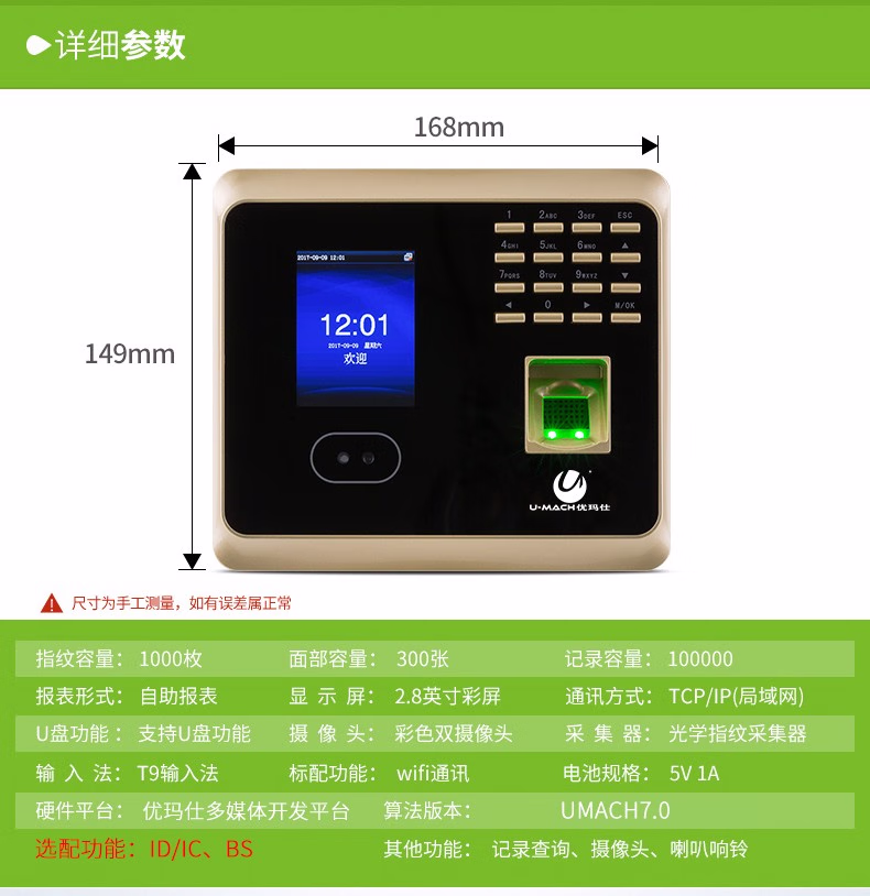 优玛仕(U-MACH) U-UF100-WIFI 考勤机 (计价单位:台) 黑+金色