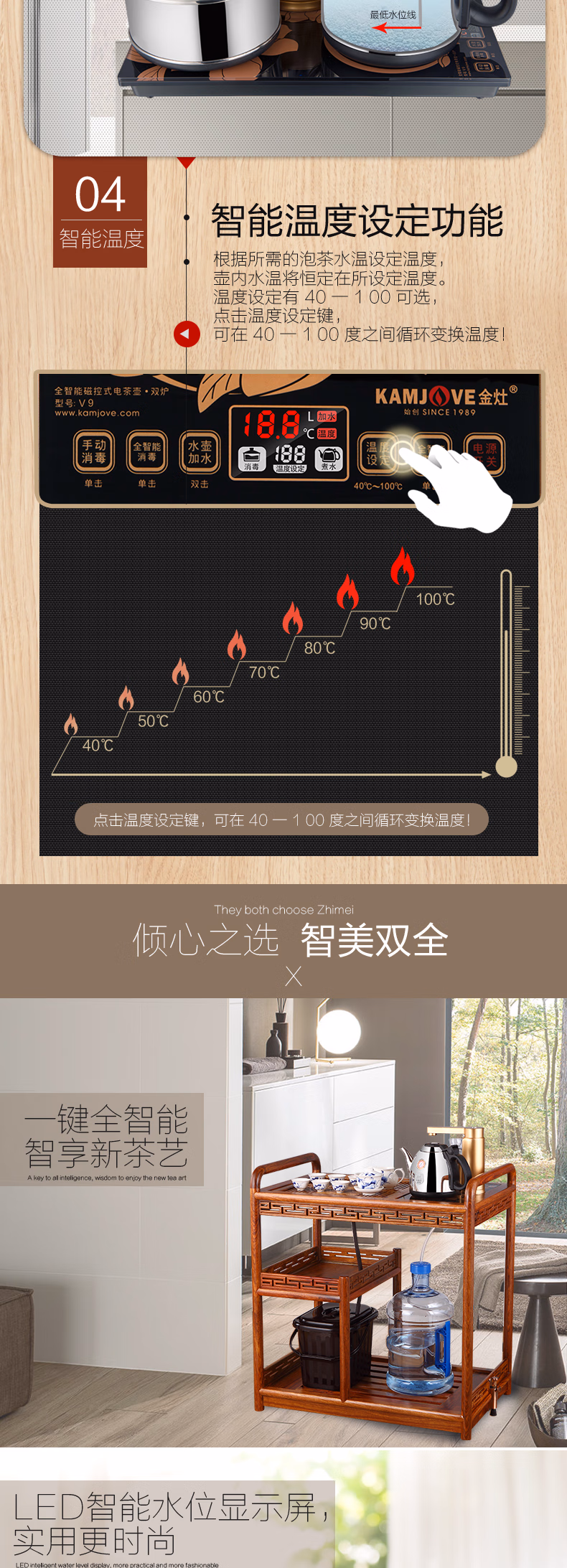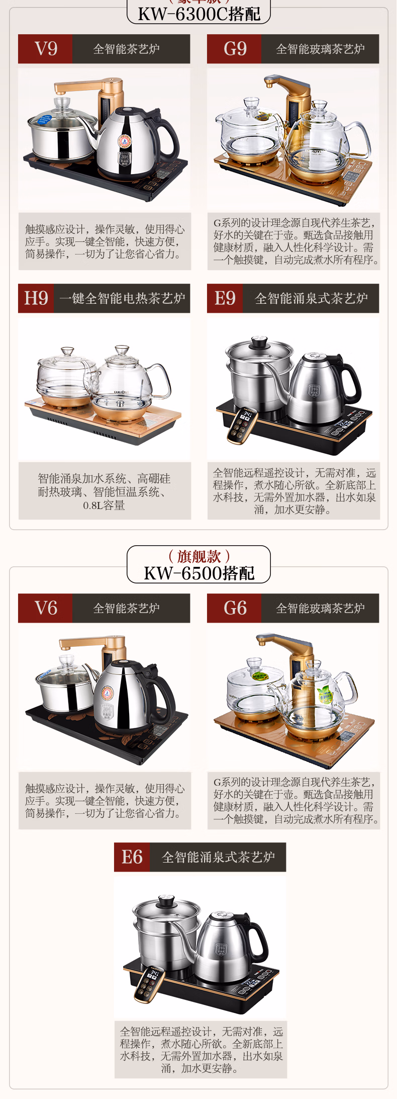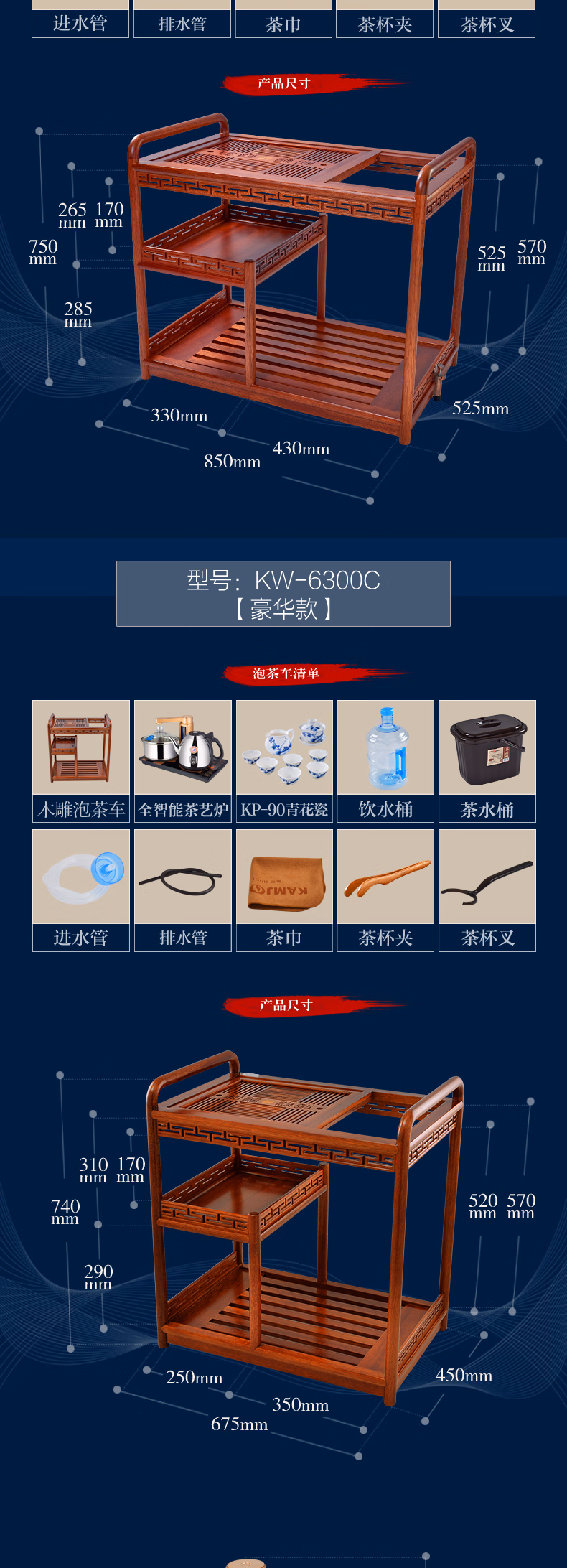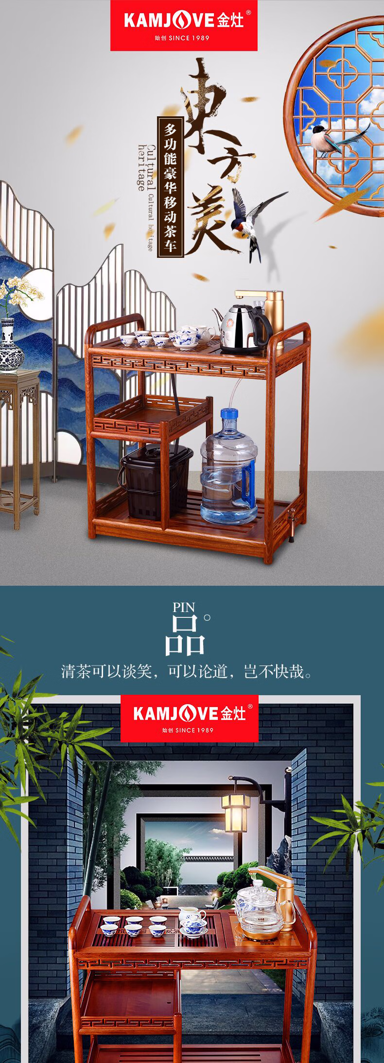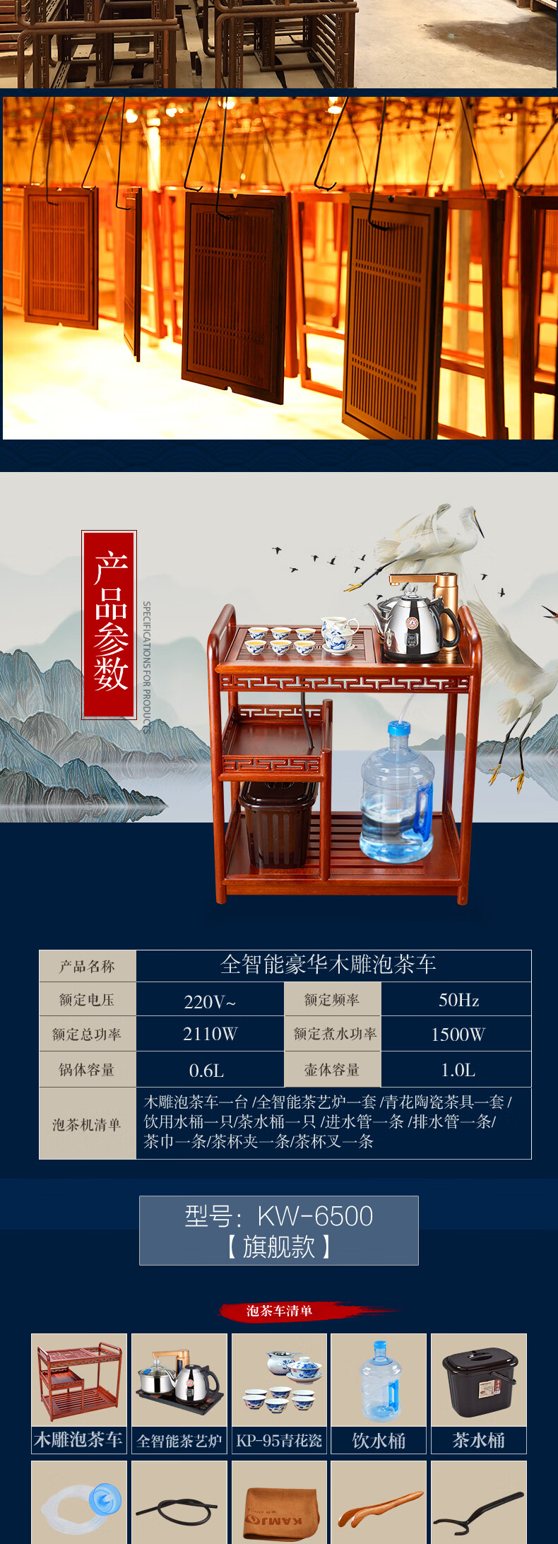 金灶(KAMJOVE) 小茶桌带轮可移动茶车实木茶车 茶台茶具套装家用茶台茶海自动上水电热水壶 【旗舰款】KW-6500搭配E6泡茶炉 单位:套