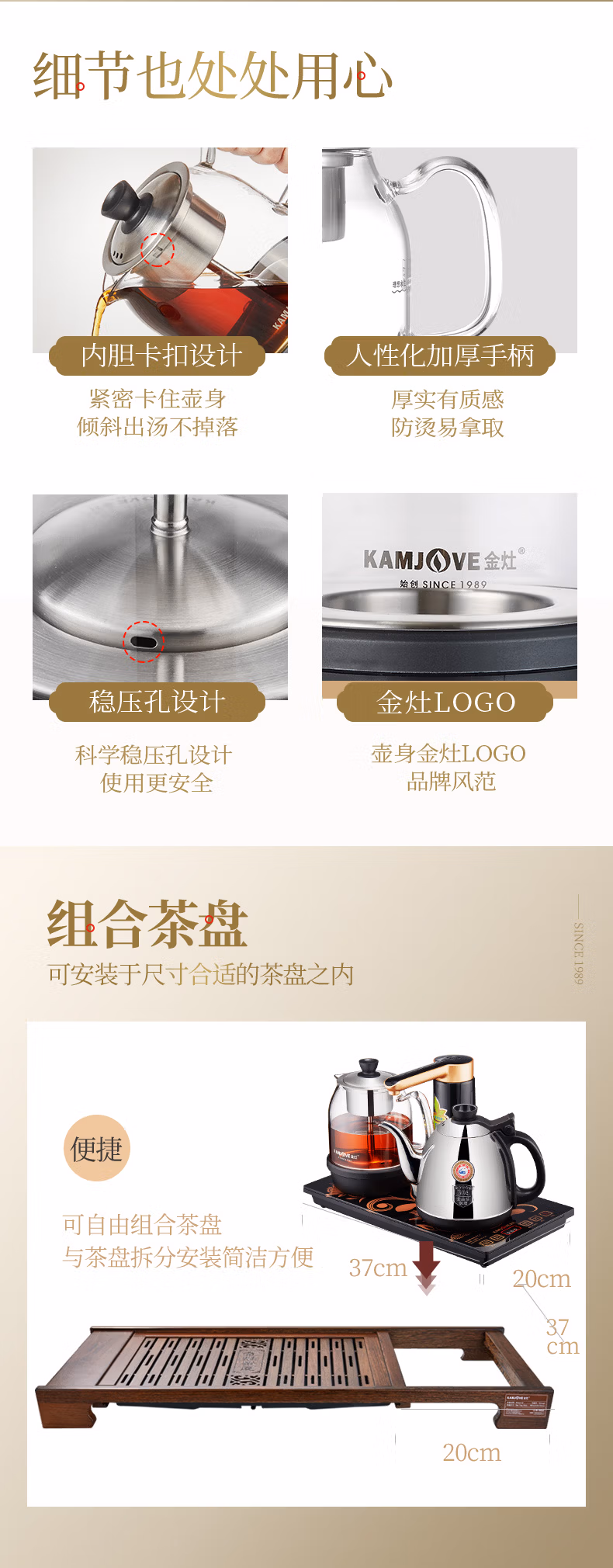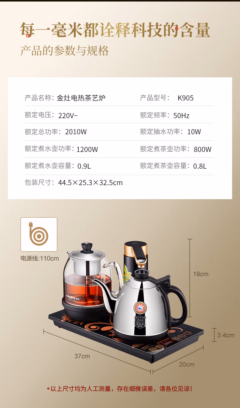 金灶(KAMJOVE)整套茶具自动上水电热水壶 烧水壶 恒温电茶壶抽水烧水茶具 茶道保温泡茶器 K-905【20*37cm】