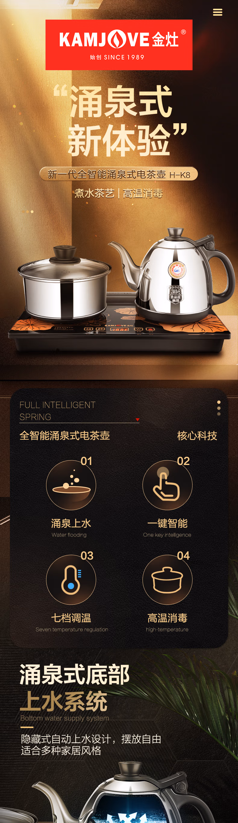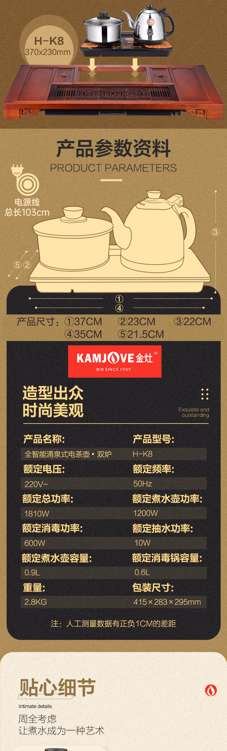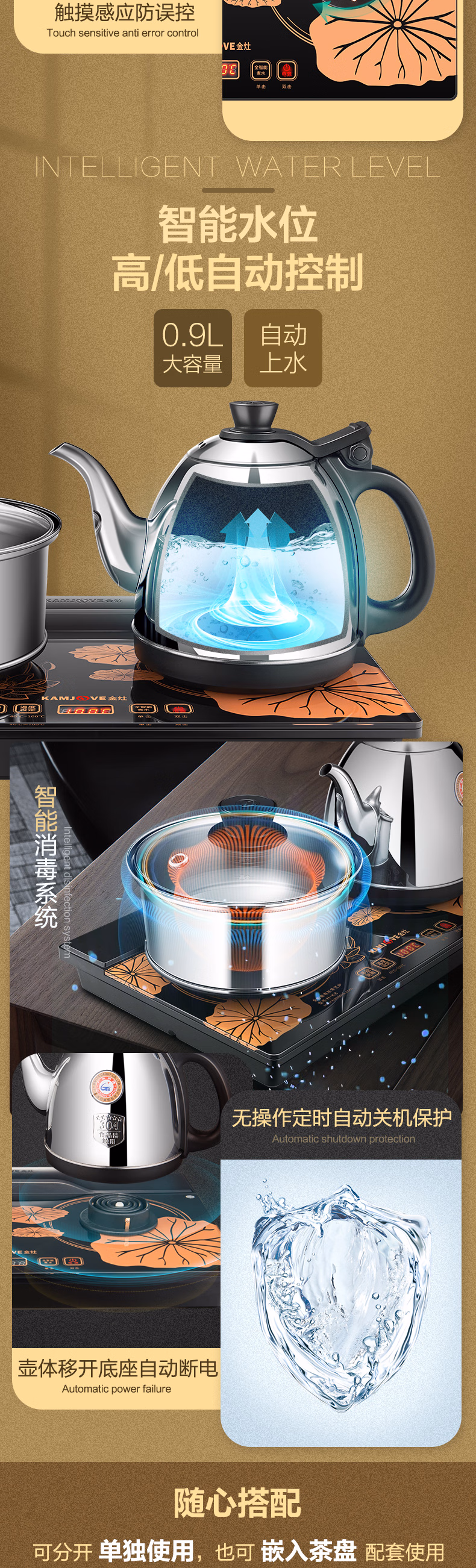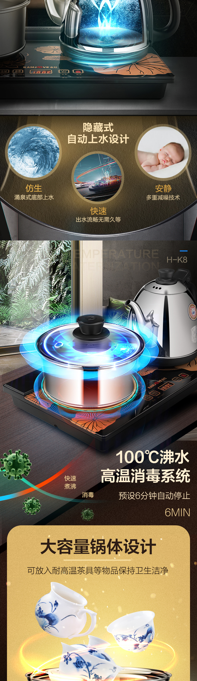 金灶(KAMJOVE)烧水壶茶具套装 涌泉式底部上水茶具泡茶壶 功夫茶具 家用自动上水电热水壶 H-K8