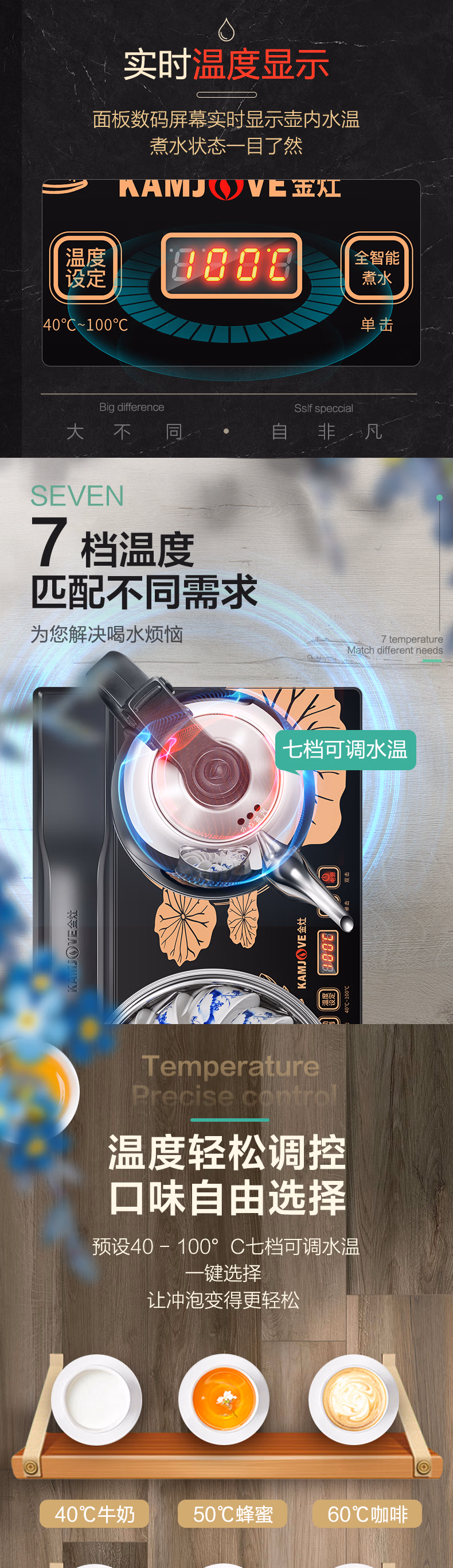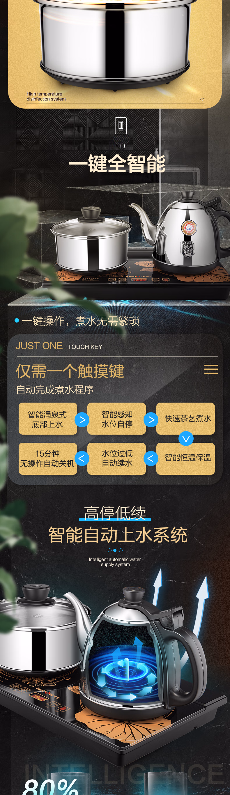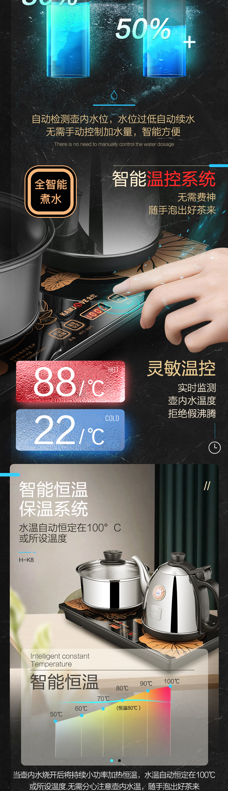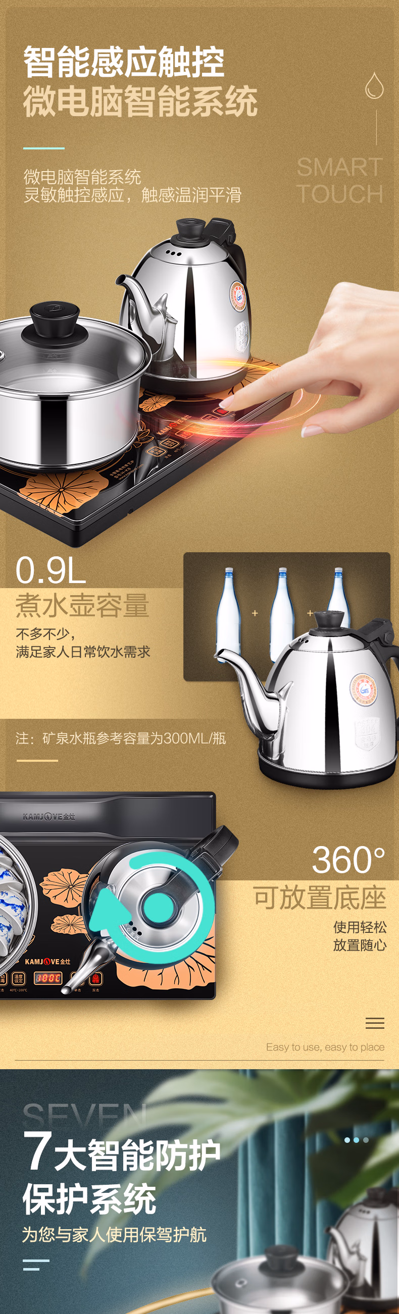金灶(KAMJOVE)烧水壶茶具套装 涌泉式底部上水茶具泡茶壶 功夫茶具 家用自动上水电热水壶 H-K8