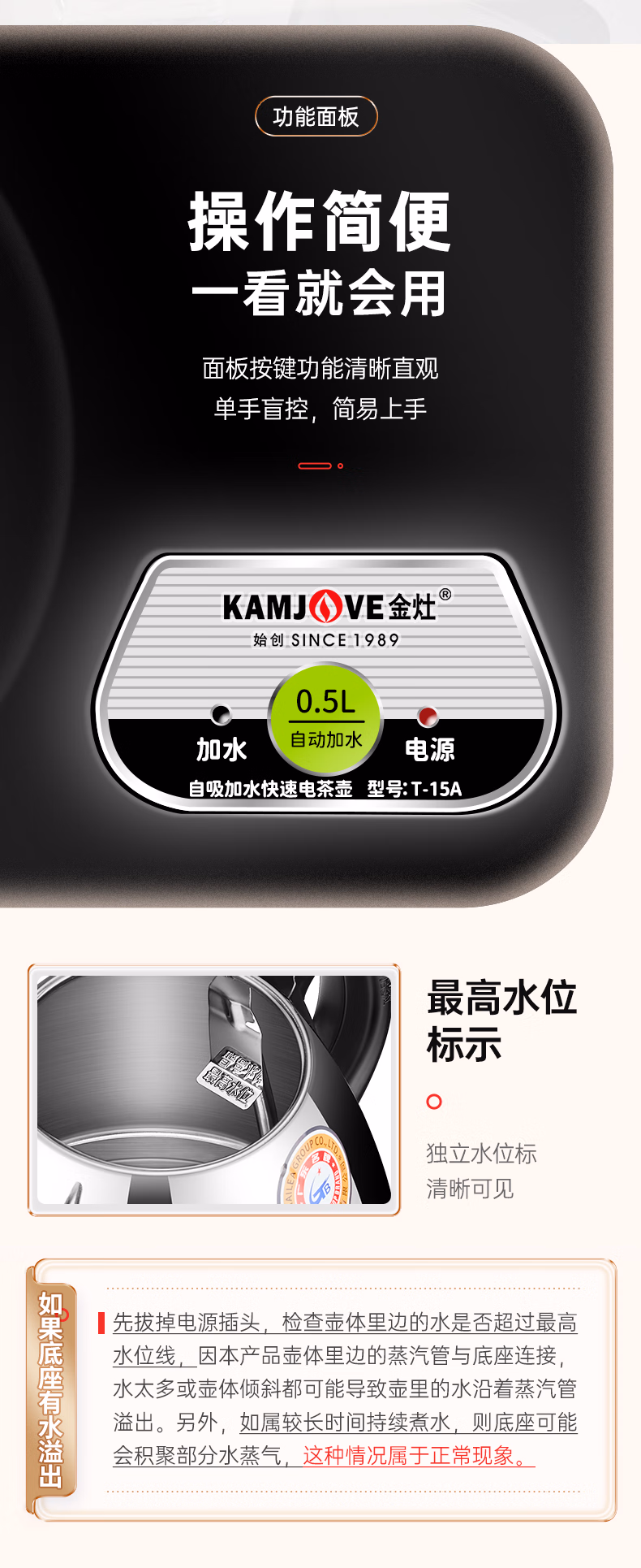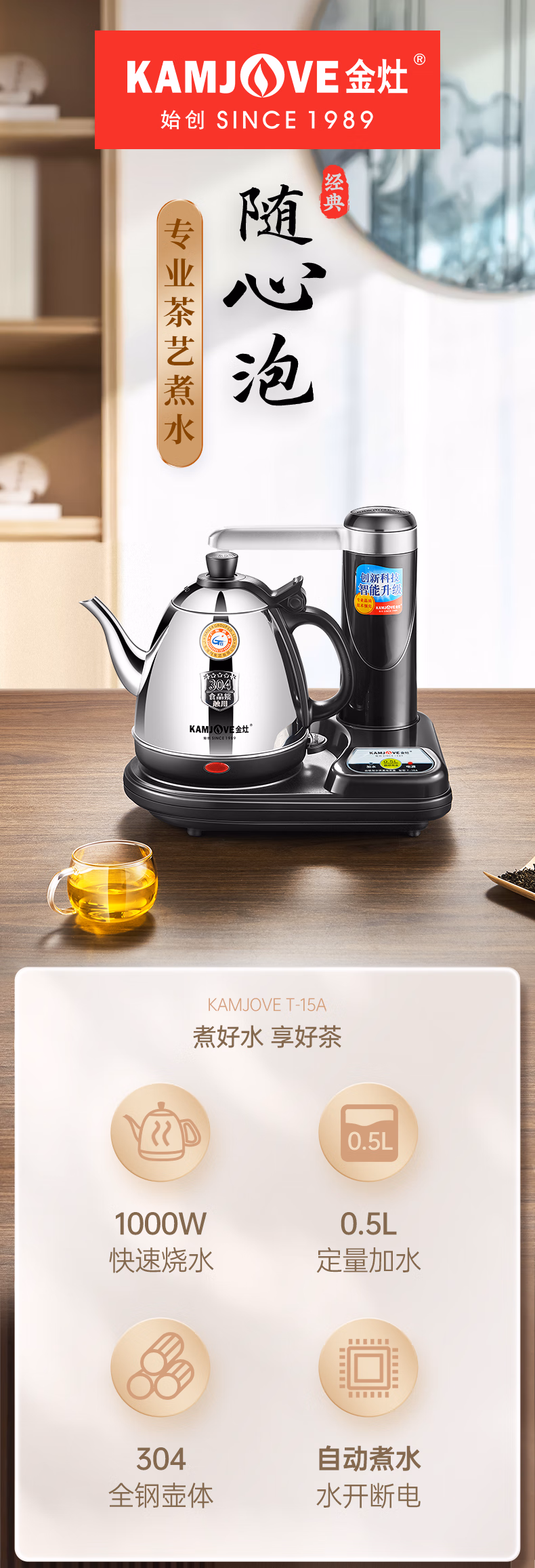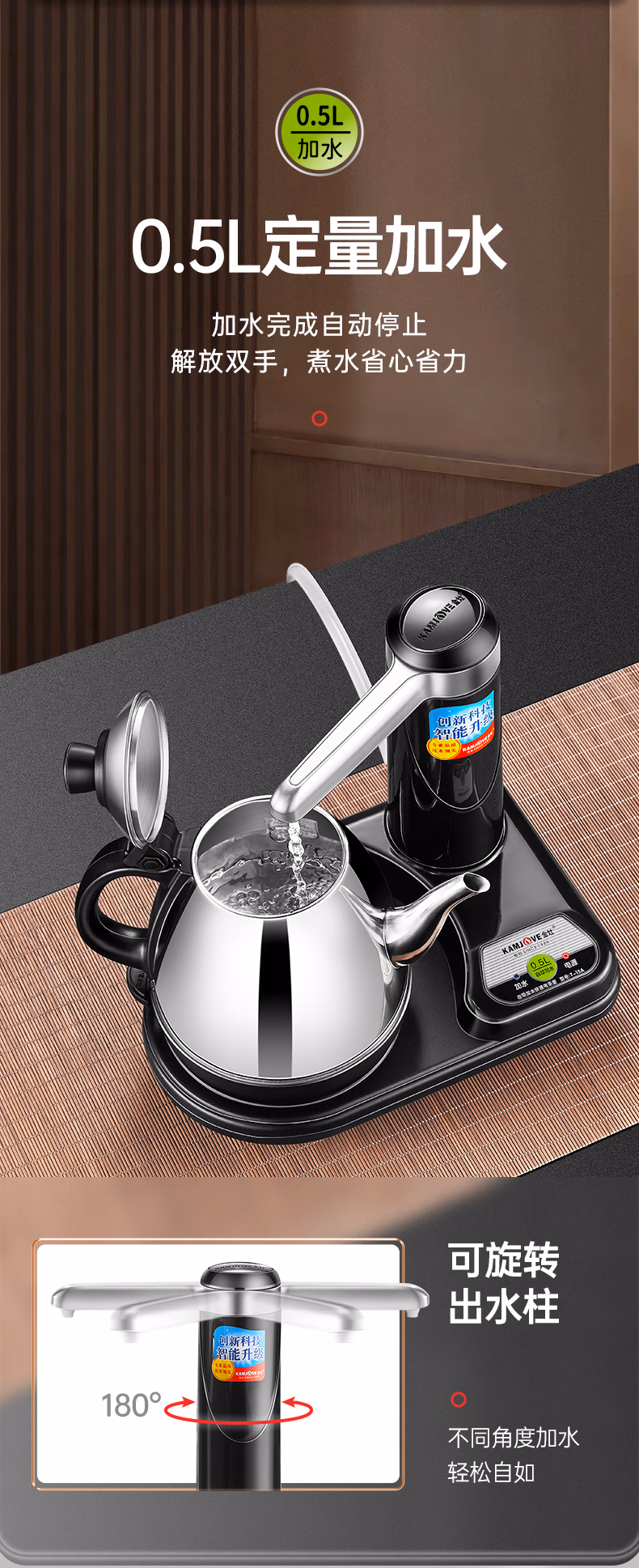 金灶(KAMJOVE) 自动上水电热水壶 抽水加水器电茶炉烧水壶茶具茶台烧水壶 T-15A 单位:套