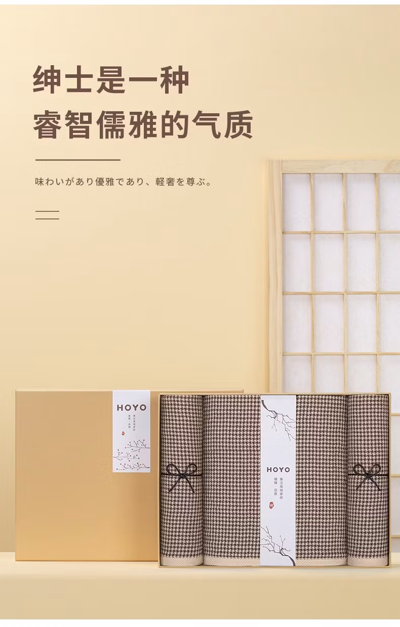 • 商品名称:HOYO日本母婴级标准纯棉千鸟格浴巾礼盒节日伴手礼福利劳保送礼可定制 千鸟格毛浴3件套礼盒-咖色